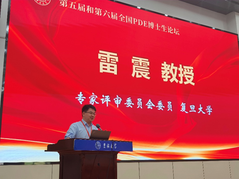 和天元数学东北中心对本次论坛的鼎力支持,雷震教授指出,全国偏微分方程博士生论坛已成功举办六届,形成了自己的特色,在国内数学界具有较强的影响力,并勉励青年学者要面向世界前沿,开展原创性研究工作。