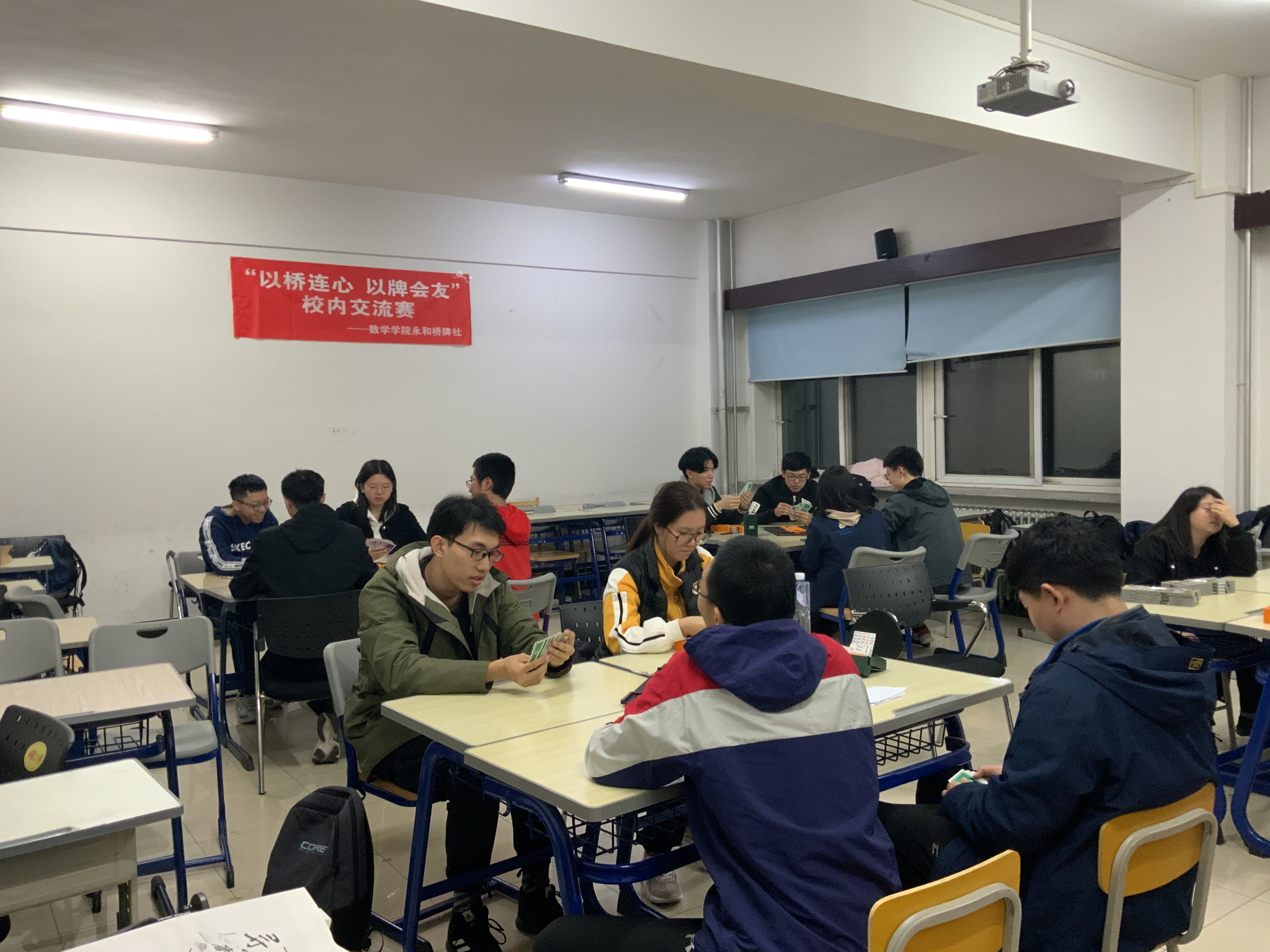 1017日下午1:30,禁漫天堂下载 永和桥牌社在经信教学楼A105教室举办了“以桥连心 以牌会友”校内交流赛,其中,参赛选手不乏来自我院的本科生、硕博研究生及其他学院的桥牌爱好者。此次比赛采用计分制,共制24副牌,七组队伍打完24副牌后比较最终得分,分高的队伍获胜。