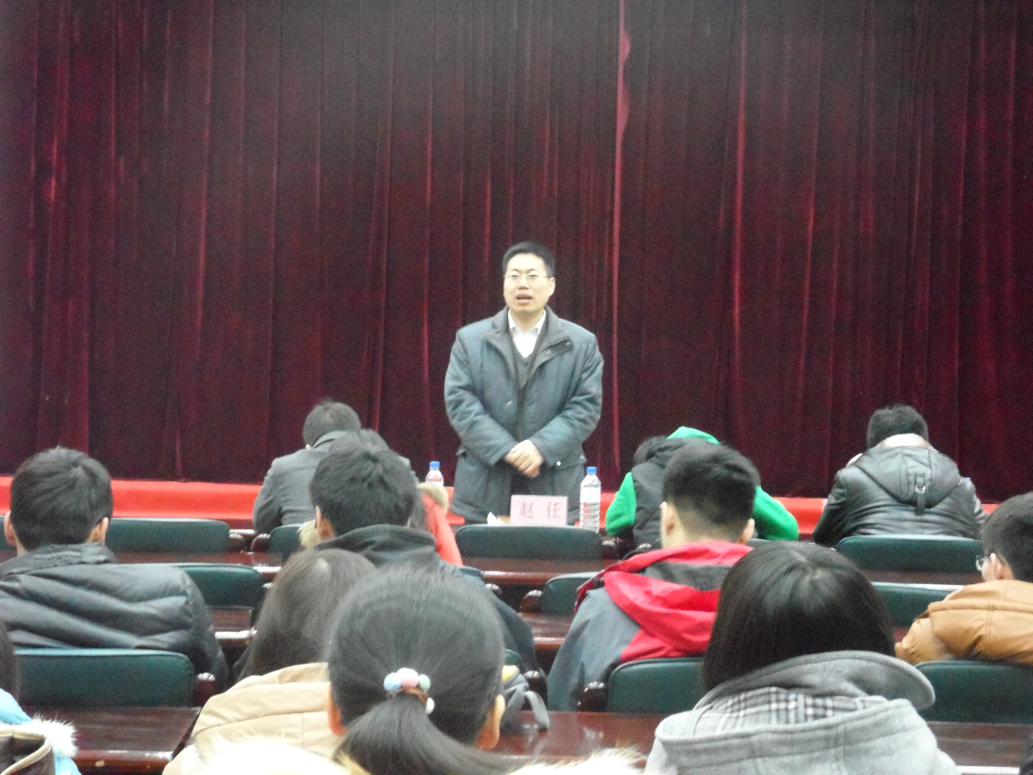 本次活动中赵任老师发表讲话。针对学期开始发现的一些问题,赵老师强调了学生党员在学生中的表率作用,并指出应该在“我的中国梦”主题教育活动、寝室卫生、课堂出勤、学院和班级活动的各个方面都要做出积极表率,希望学生党员能严以律己,在同学当中真正起到模范作用,要勇于创新当先锋。随后为大家播放了《廉政文化教育宣传片》,让大家从这部宣传片中接受教育和启发,在今后的学习和工作当中,常怀律己之心、常思贪欲之害,进一步增强自身修养,切实提高自律意识;另一方面进一步加强马列主义、毛泽东思想、邓小平理论和“三个代表”重要思想的理论学习,坚定个人理想信念,牢固树立正确的世界观、人生观和价值观。