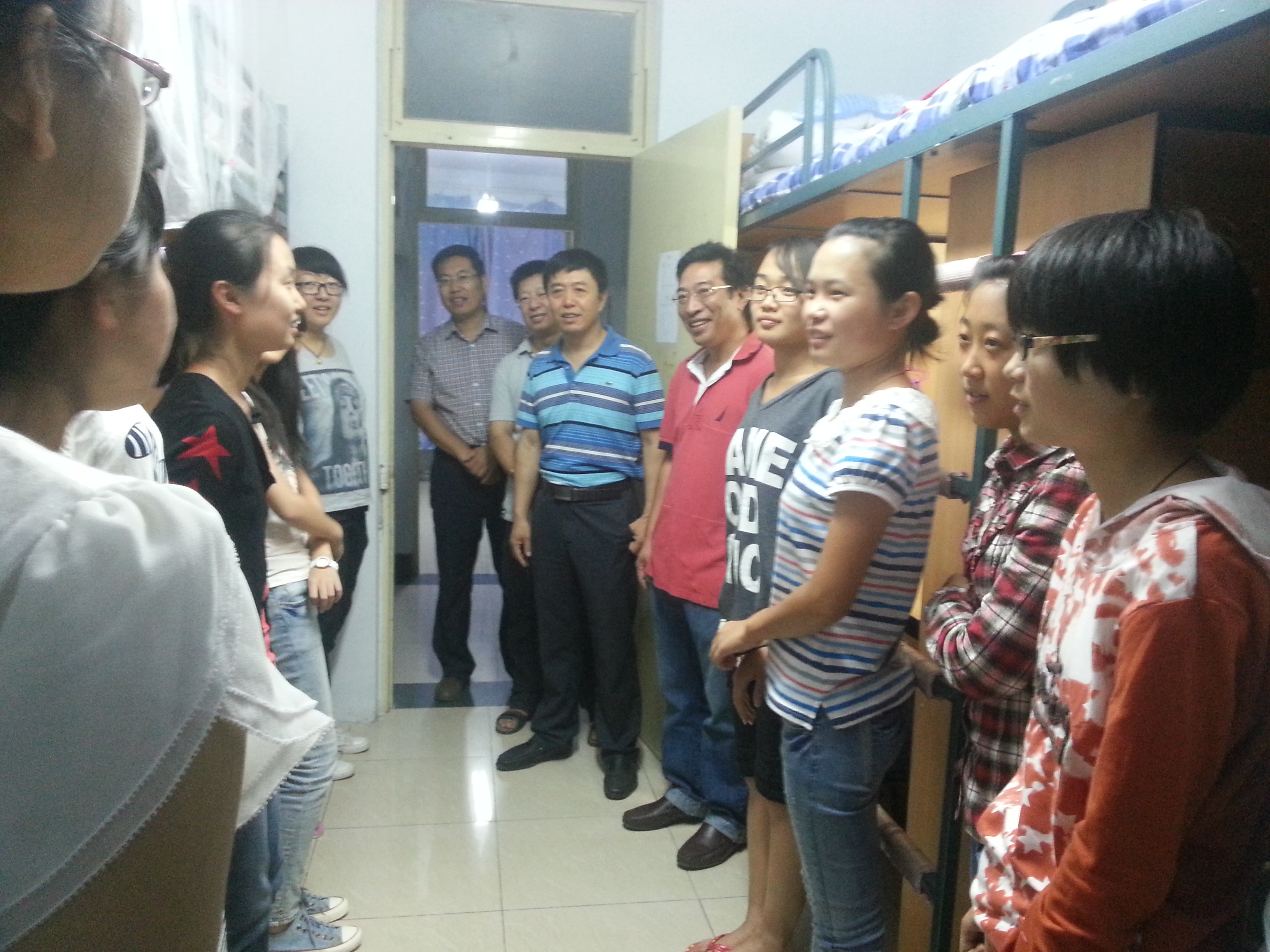 院长李辉来老师、党委书记李晓光老师、副院长邹永魁老师、党委副书记赵任老师在几位辅导员老师的陪同下来到了南二和南四新生寝室,了解新生的报到、住宿等情况。