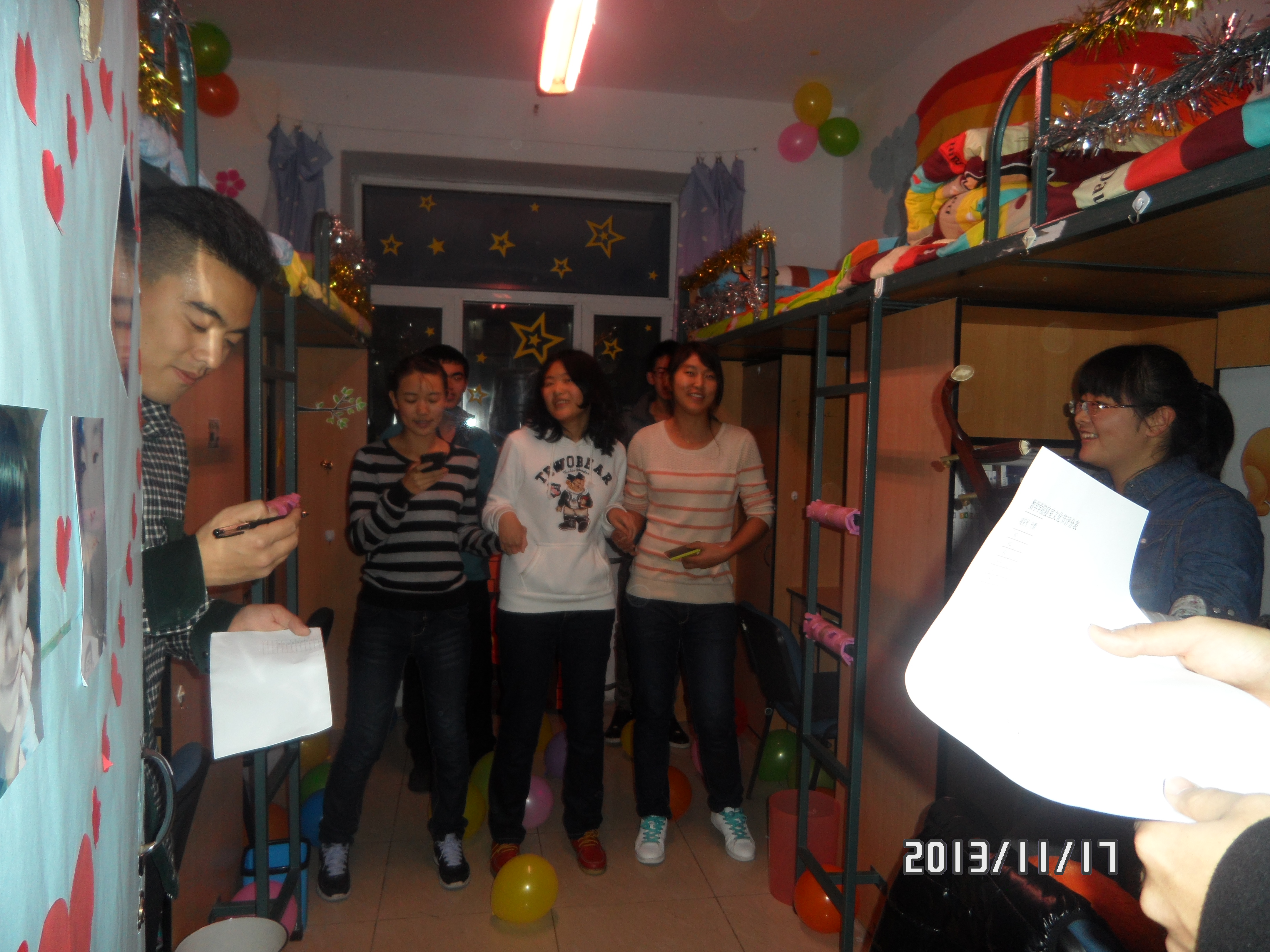 学生会女综部主办的2013级寝室文化节女生部分顺利展开。学工办主任崔帅老师、辅导员申川老师,学生会主席王艺霖、团委副书记迟仲达、社团联合会主席齐霄虹以及其他一些学生干部作为评委参加此次评比活动。
