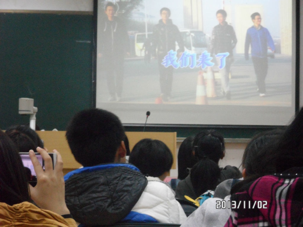 社联宣传部为2013级新同学举办的,“扬青春,展风采”班级VCR大赛在数学楼一楼报告厅举行。吸引了许多同学前来观看。