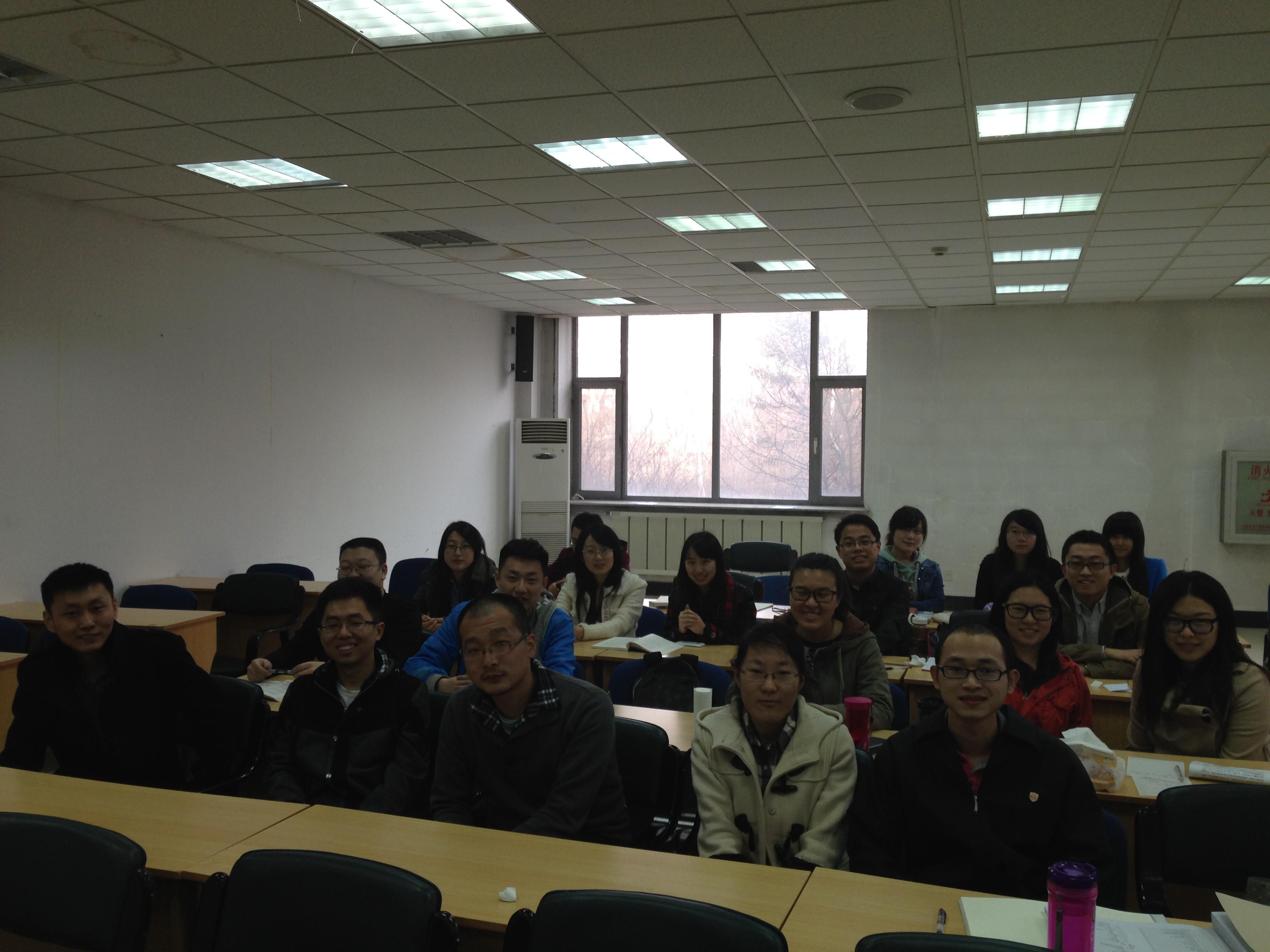 13级概率论与数理统计专业全体研究生齐聚数学楼一楼报告厅,举办了“我的人际关系”主题班会,主持人为概率专业班长揣瑞与副班长董丕杰。