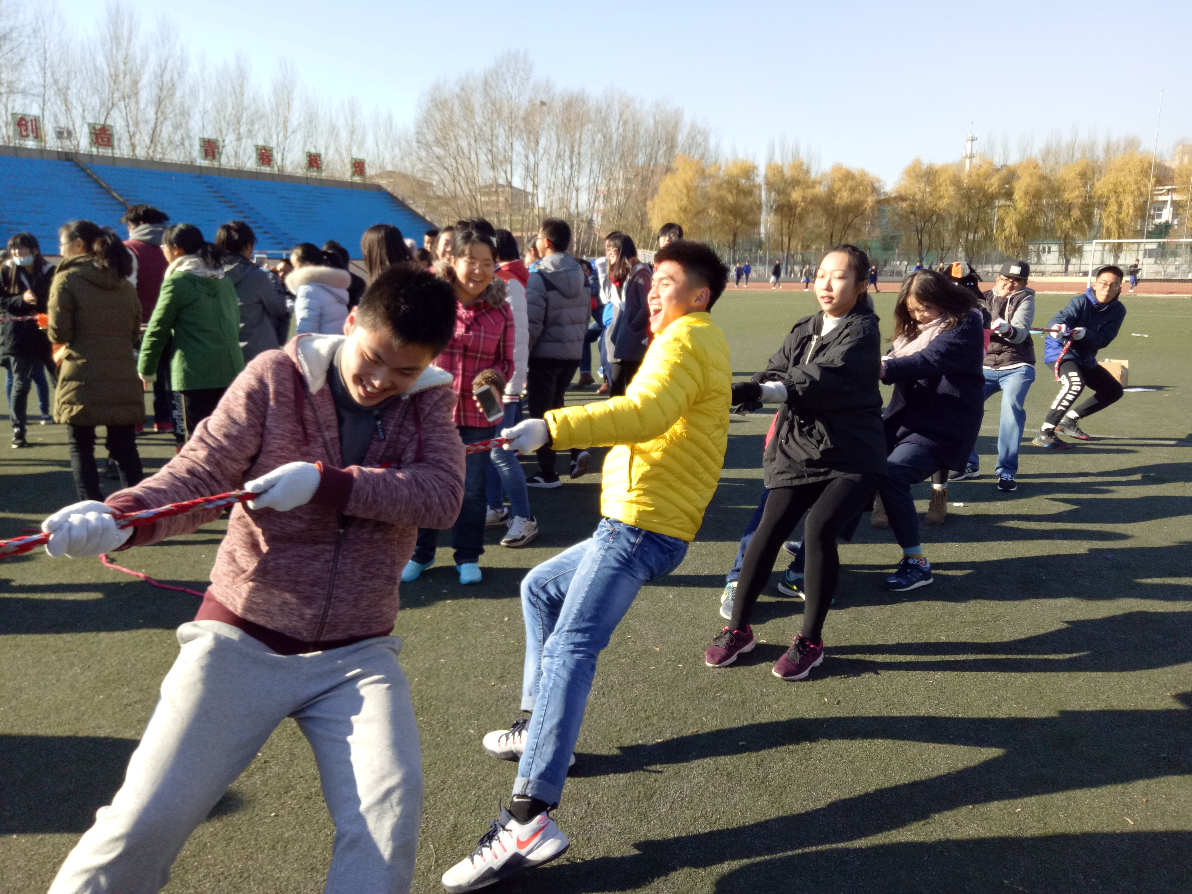团委办公室、团委实践部、社团联合会公关部于10月29日中午十二点在田径场组织全体团学社媒成员举办了素质拓展活动。