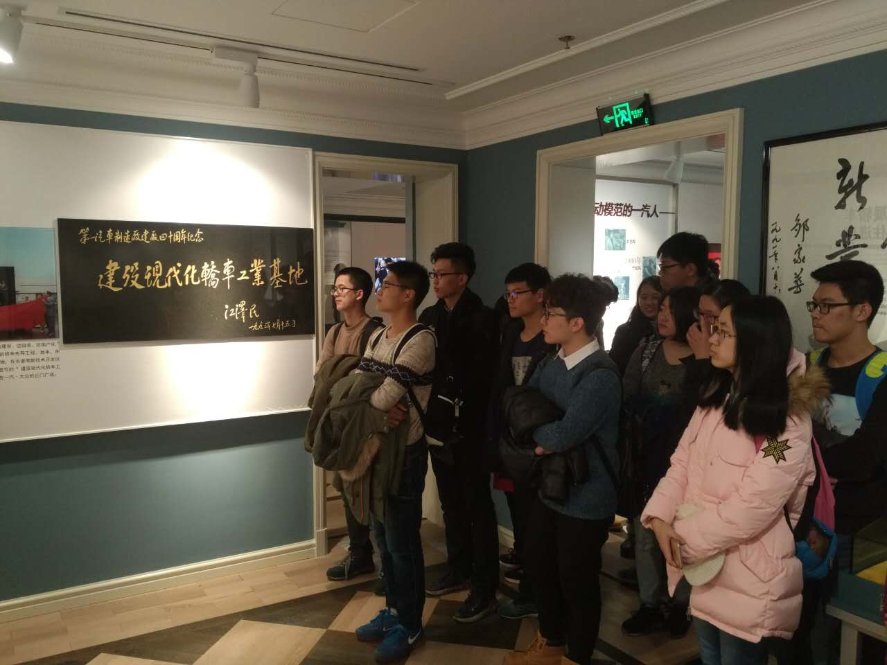 11月10日,31期入党积极分子到达长春一汽展览馆进行参观。在讲解员的介绍下,同学们先后参观了一汽的历史文化传承部分和现代创新发展部分。在参观学习的过程中,同学们了解到第一汽车制造厂从奠基兴建、建成投产,直至建造出新中国第一辆解放牌卡车、新中国第一辆东风牌小轿车和第一辆红旗牌高级轿车的辉煌历史。经过六十多年的发展,一汽已经成为国内最大的汽车企业集团之一。接下来,同学们继续参观了一汽现代化建设的成就展示。企业的发展与壮大离不开人的创新与创造,正是因为有成百上千的一汽人的艰苦奋斗,不懈努力,才有了一汽今日的辉煌。参观结束后,31期积极分子全体成员在展馆前合影留念。本次积极分子社会实践圆满完成。