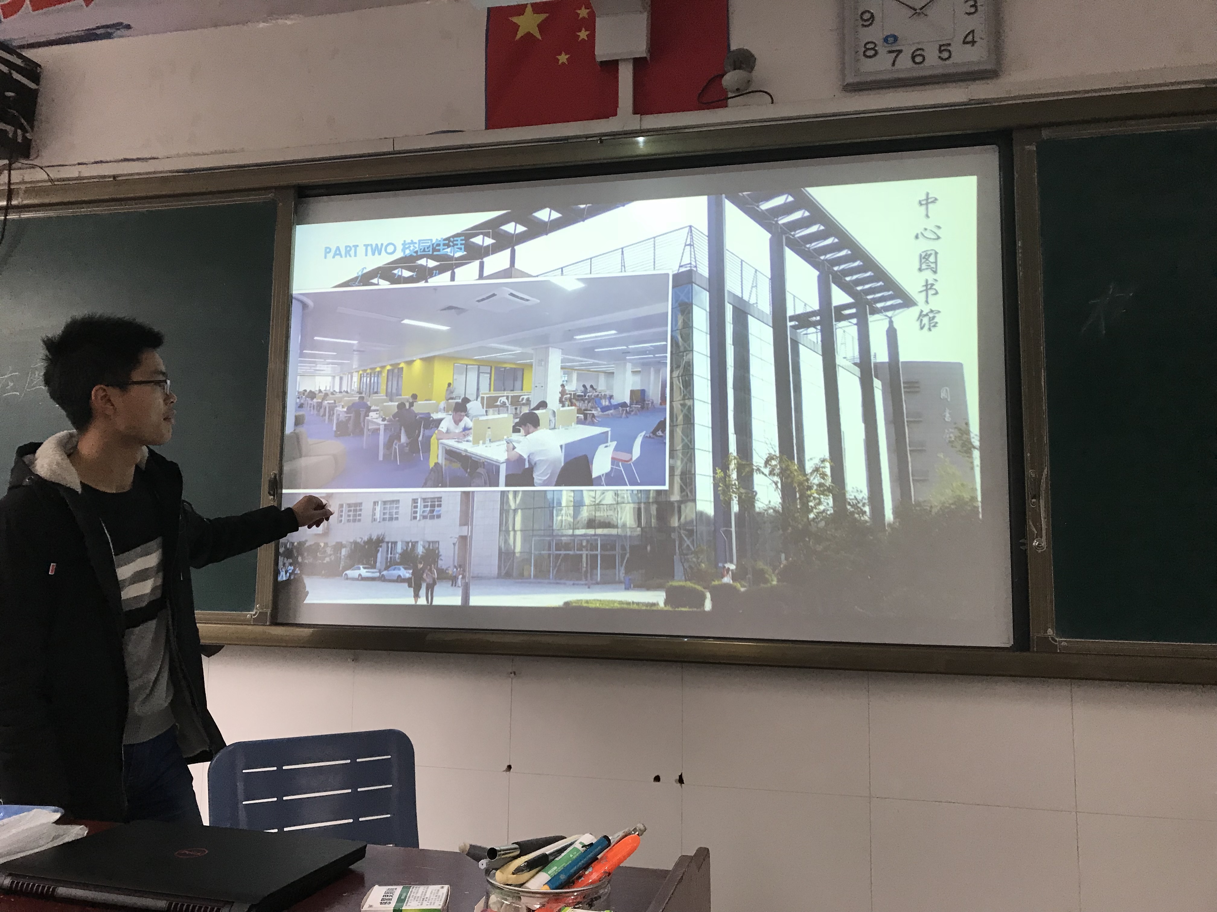 进行了较为详细的介绍,包括学校强势学科,学校概况、机构设置、科学研究、队伍建设、学科建设、对外交流和招生计划等方面详细的给学子们介绍了我校辉煌的历史。同学们认真听队员们讲解,相当专注。以河南省洛阳市第一高级中学为例,宣讲队队员与一些特意前来咨询的同学们进行了较为深入的探讨,并对同学们的兴趣学科进行了简单介绍,学弟学妹们的活力和热情而洋溢着开心的笑容。宣讲现场气氛非凡,台下,同学们的眼睛里都泛着激动的泪花,耐心聆听我们的介绍,时不时拿出手机拍照,或是前后交流一下。到了提问环节,同学们也积极提出问题,其中大部分还是关心分数线和学校的学科和队伍建设情况,我们一行人也认真进行解释和解答。除了学科基本情况,队员们在ppt中还就学校的一些其他情况向同学们展示了学校精美的图书馆及其设施,丰富的藏书,俊美的教学楼,鼎新楼,实验楼,以展示我校良好的学习环境。