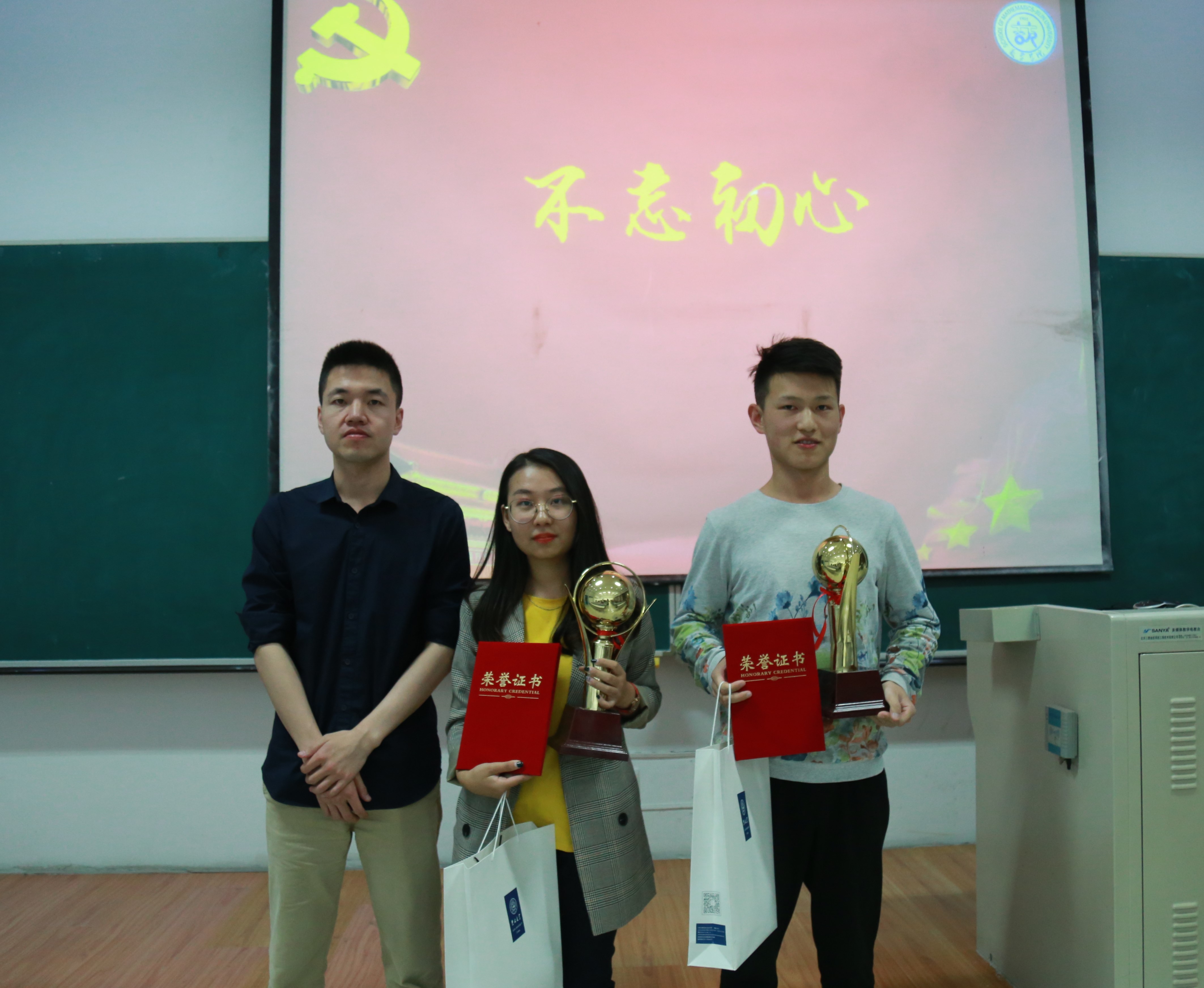 大会第二项:实践成果评比。在评比之前,先由主持人介绍了评比规则及奖项设置。评比规则:第一部分是活动前期禁漫天堂下载 微信公众号投票,该分数占最终结果的百分之三十。第二部分是评委团评选分数:李庚老师以及主席团成员作为评审团给各代表队打分,该成绩占百分之七十。接下来各实践队代表上台展示了他们的实践经历以及成果。综合两部分的分数,共评选出一等奖两名,二等奖四名,三等奖三名。一等奖:小“数”林支教团以及禁漫天堂下载 河南精准扶贫考察小组;二等奖:统计二班“心之小队”,计算一班“梦之队”,“追随总书记,重走初心路”学习团,计算二班“不忘初心”践行队;三等奖:数一&金数吉商志愿团、数应二班红色宣讲团 、统计一班爱心接力志愿者团。由团委书记李庚老师、团委副书记兼社团联合会主席郑旭东、团委副书记李潇琦、学生会主席邱韵分别为获奖队伍颁发奖杯,荣誉证书以及奖品。