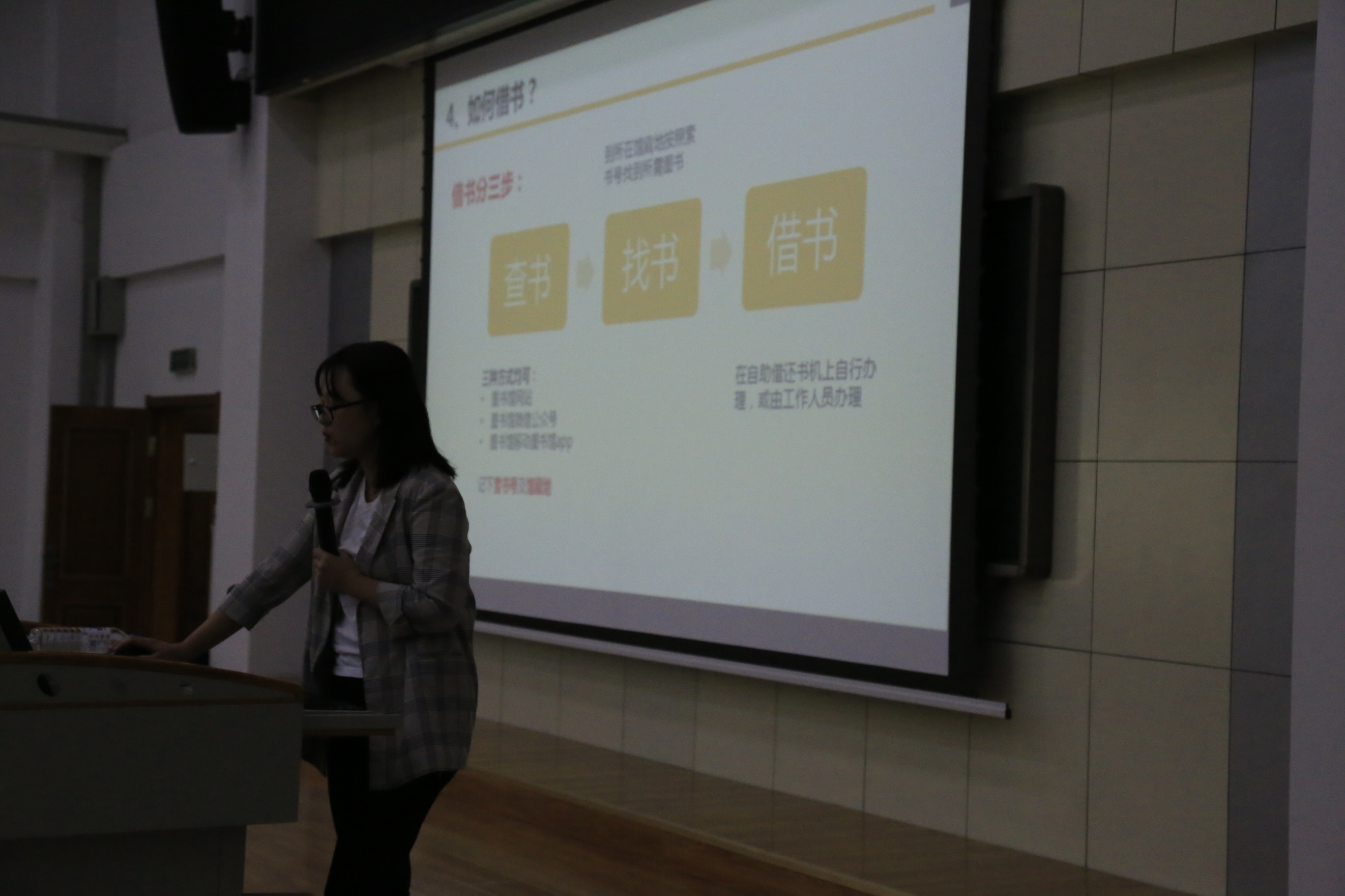 于2019年8月27日上午九点五十在数学楼二楼报告厅开始了新生入学图书馆教育课程。