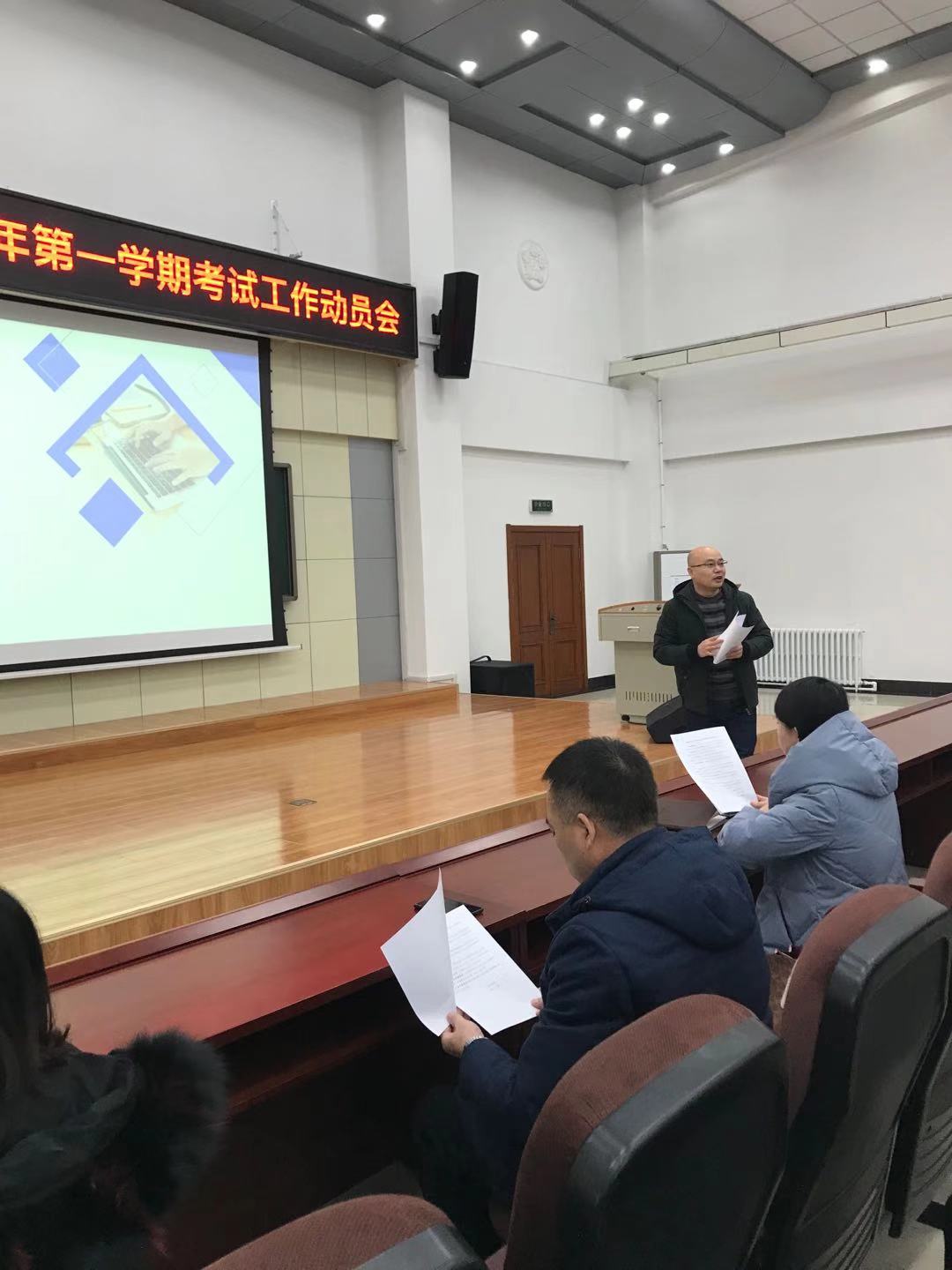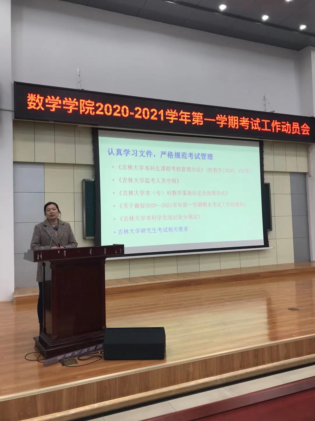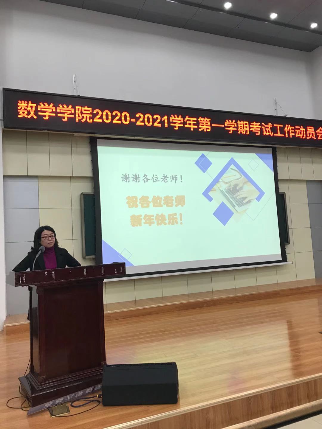在数学楼二楼报告厅召开2020-2021学年第一学期考试工作动员会,就本学期期末考试工作做出布置和要求。学院全体教师、教学秘书参加了会议。会议由院长助理王春朋主持。