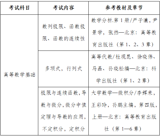原定笔试专业科目 《高等数学》,现调整为以下内容: