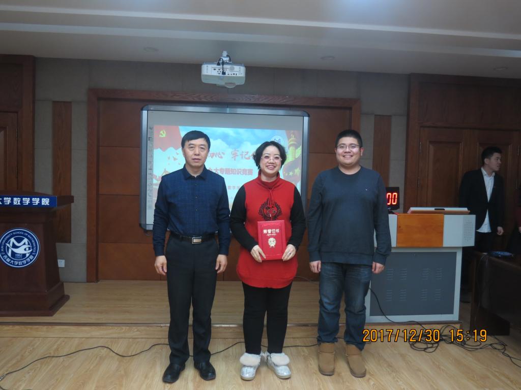 为了更好地学习宣传好党的“十九大”精神,进一步深刻领会习近平同志新时代中国特色社会主义思想,学院以“赛”促“学”,12月28日下午在数学楼一楼报告厅,学院党委组织开展了“不忘初心 牢记使命----十九大专题知识竞赛”,7个教工党支部代表队和1个民主党派代表队参赛。