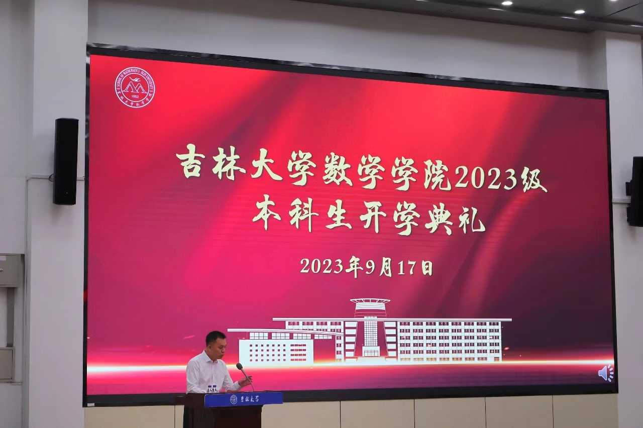 在数学楼报告厅隆重举行了2023级本科新生开学典礼。院长张然老师,党委书记王春朋老师、副院长韩月才老师、王浩百老师,公共数学教学与研究中心副主任徐向红老师、教学指导委员会主任纪友清老师、学位委员会主席李永海老师,2022级、2023级全体班主任老师,近五年留院青年教师,学生工作办公室全体辅导员老师以及2023级全体同学参加了本次开学典礼。典礼由学院党委副书记兼副院长范庆文老师主持。