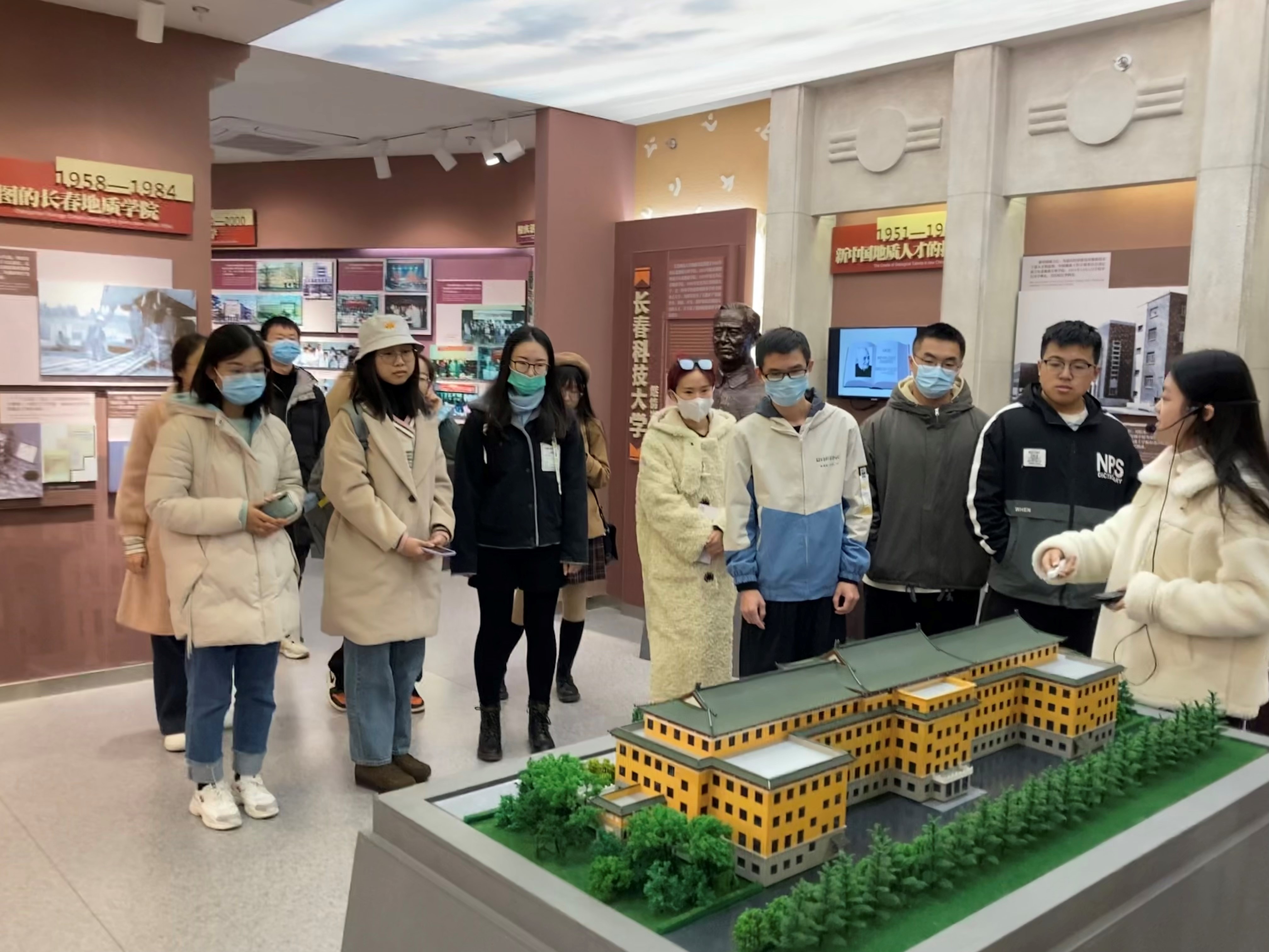 的校史。大家时而驻足观看展品,时而低头记录所思所得。