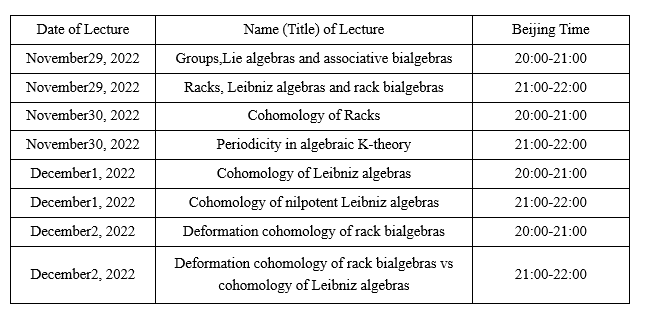 课程题目:Racks, Leibniz algebras and rack bialgebras