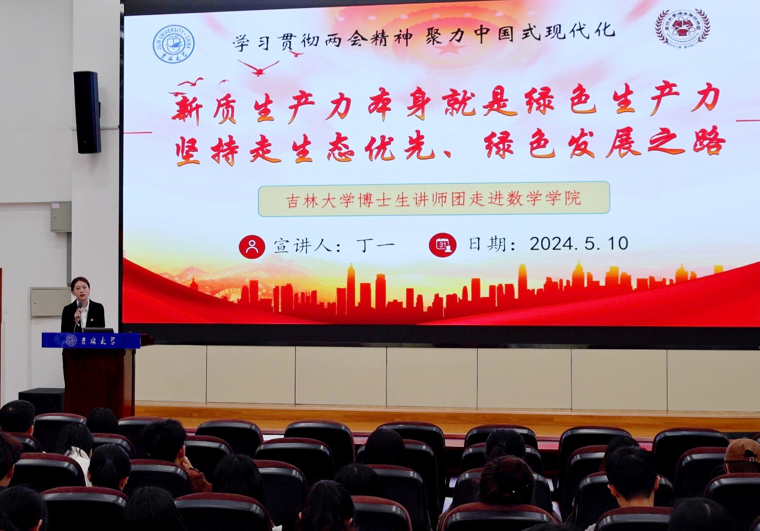 在本次宣讲中,丁一讲师以习近平总书记在主持中共中央政治局第十一次集体学习时的讲话,即“绿色发展是高质量发展的底色,新质生产力本身就是绿色生产力”为切入点,详细讲解了这一重要论断所阐释的新质生产力与绿色生产力之间的内在联系。绿色发展是实现经济高质量发展的必然要求,保护生态环境就是保护生产力,改善生态环境就是发展生产力。新质生产力是绿色发展的重要支撑,践行绿色发展理念为培育发展新质生产力提供了持续动力。通过本次宣讲,同学们更加明确了习近平生态文明思想是系统完整、逻辑严密的科学体系,它标志着我们党对社会主义生态文明建设的规律性认识达到新的高度。