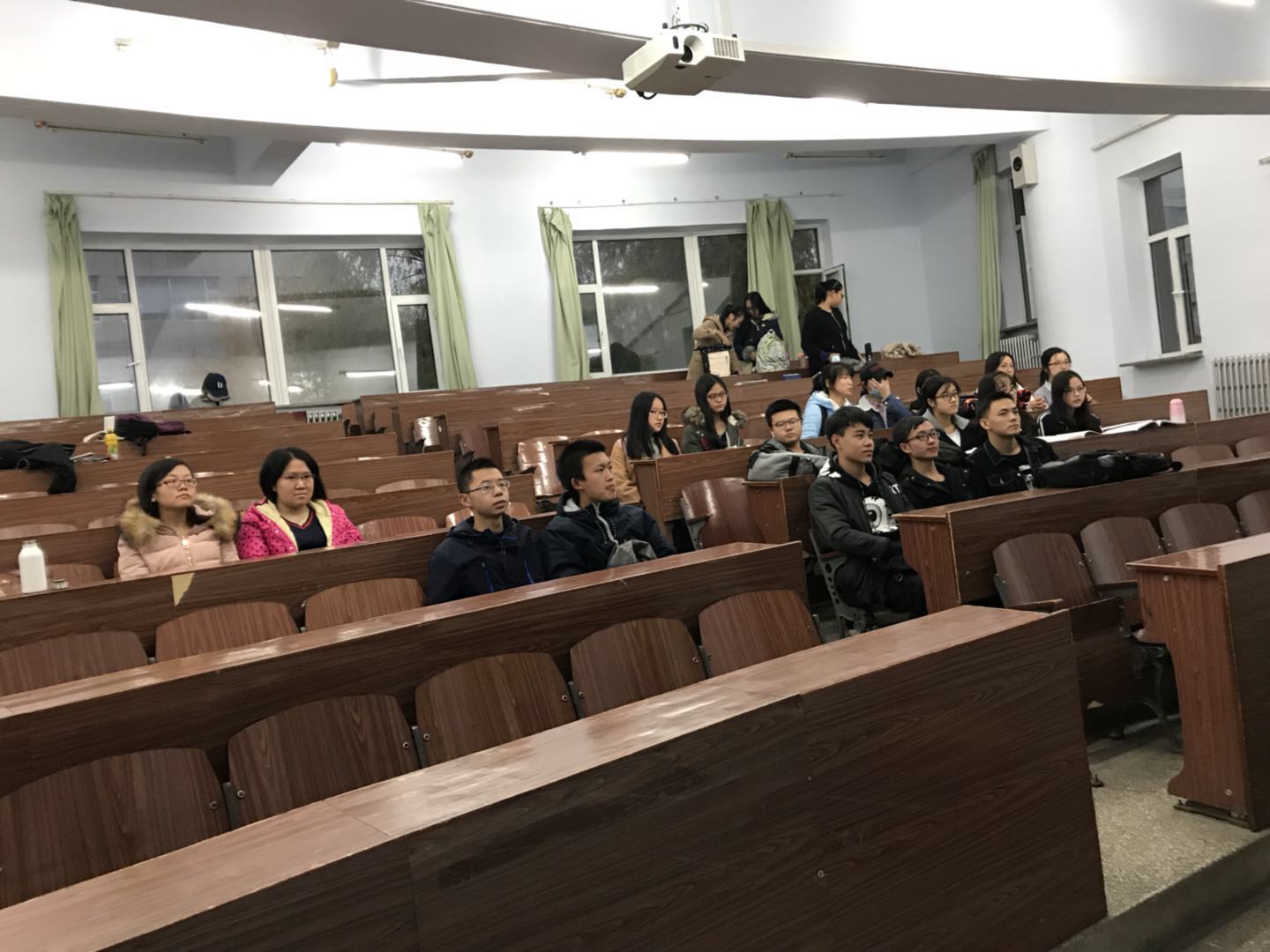首先,团支书赵越介绍了十九大,内容包括十九大的重要意义、目标、政策。之后全班同学一同观看了题目为“展望2017,迎接十九大:全面做好迎接十九大的准备”的视频,看完了之后,同学们积极踊跃地发表了自己的想法,之后在班长王时坤引导下一同回顾十八大的胜利召开,国家这五年的变化。之后,全班分为五组,以小组形式解读十九大内容,派代表上台发表自己想法,班会气氛达到高潮。最后,班长总结了此次喜迎十九大团日活动,班会在热烈地掌声中结束