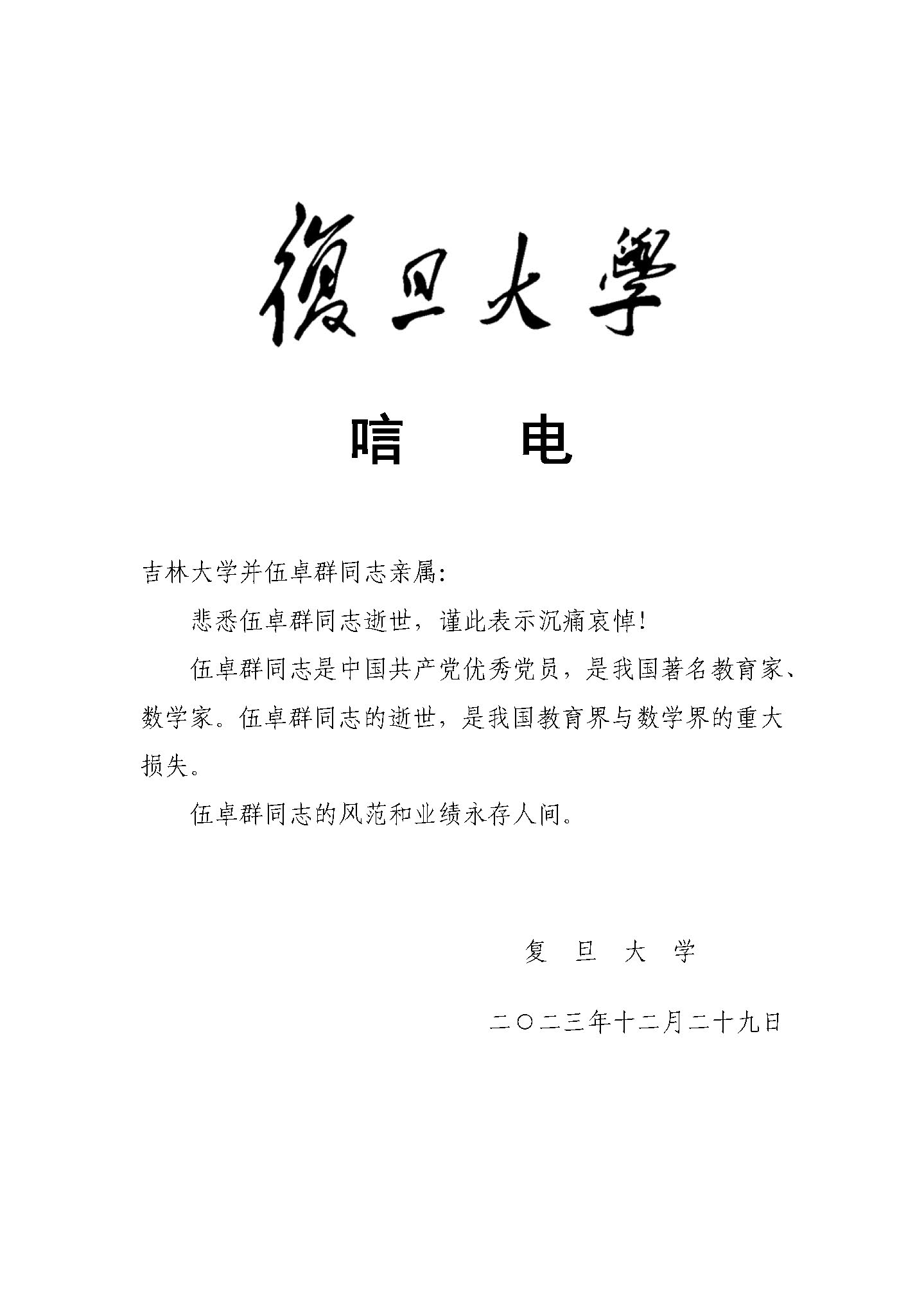 复旦大学唁电