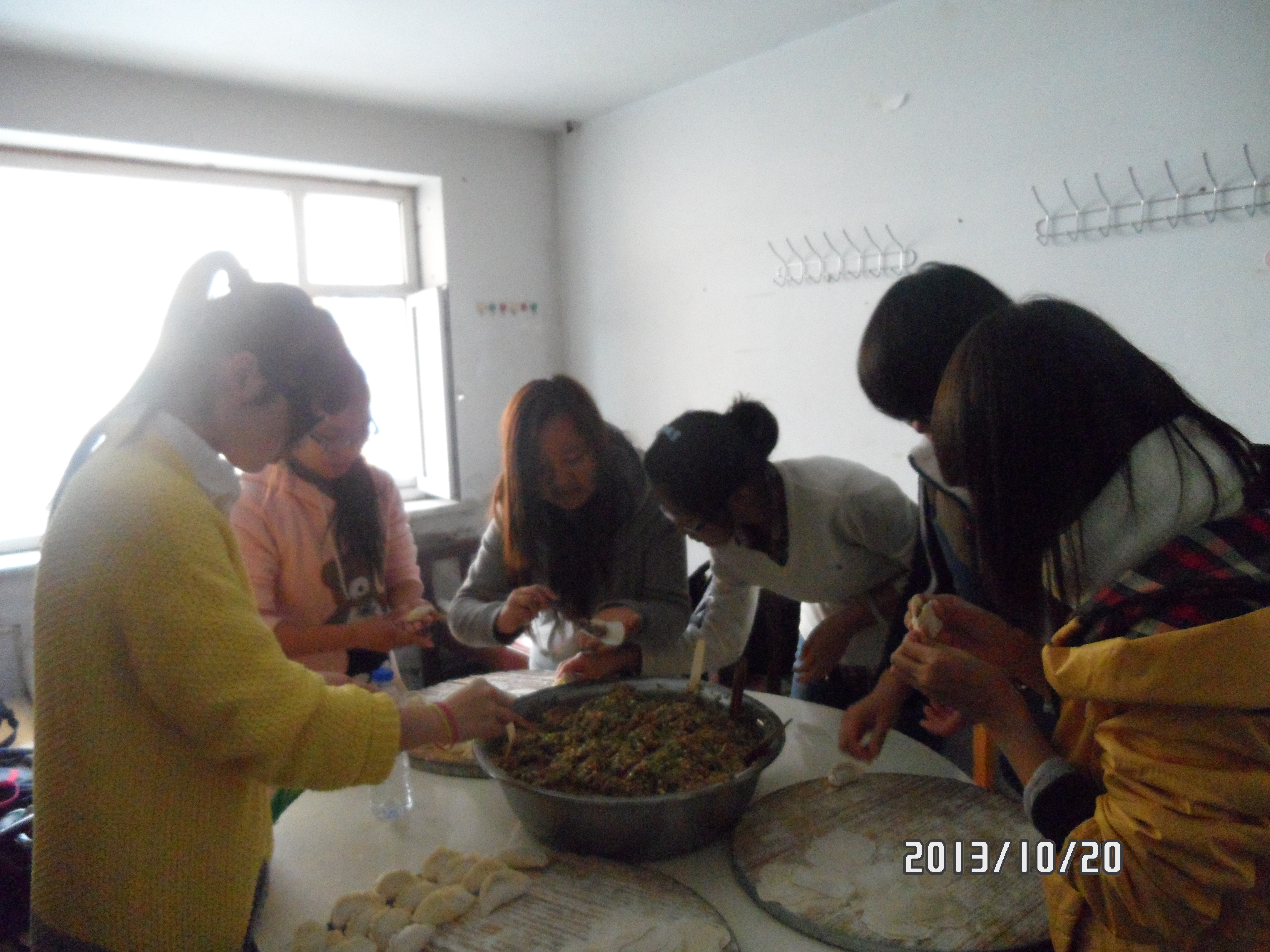 午饭时间,同学为老人包了饺子。饭后,志愿者又为老人表演了军体拳、二人转、猜红歌名等节目。同学们充满热情和活力的表演感染了在场的所有人,有一位老奶奶在同学手风琴的伴奏下演唱了一首《莫斯科郊外晚上的月亮》,敬老院院长也为大家唱了一首《感恩》,以此来教导同学们要谨记孝道。活动结束之际,同学们祝愿老人们健康长寿,与老人们依依惜别。