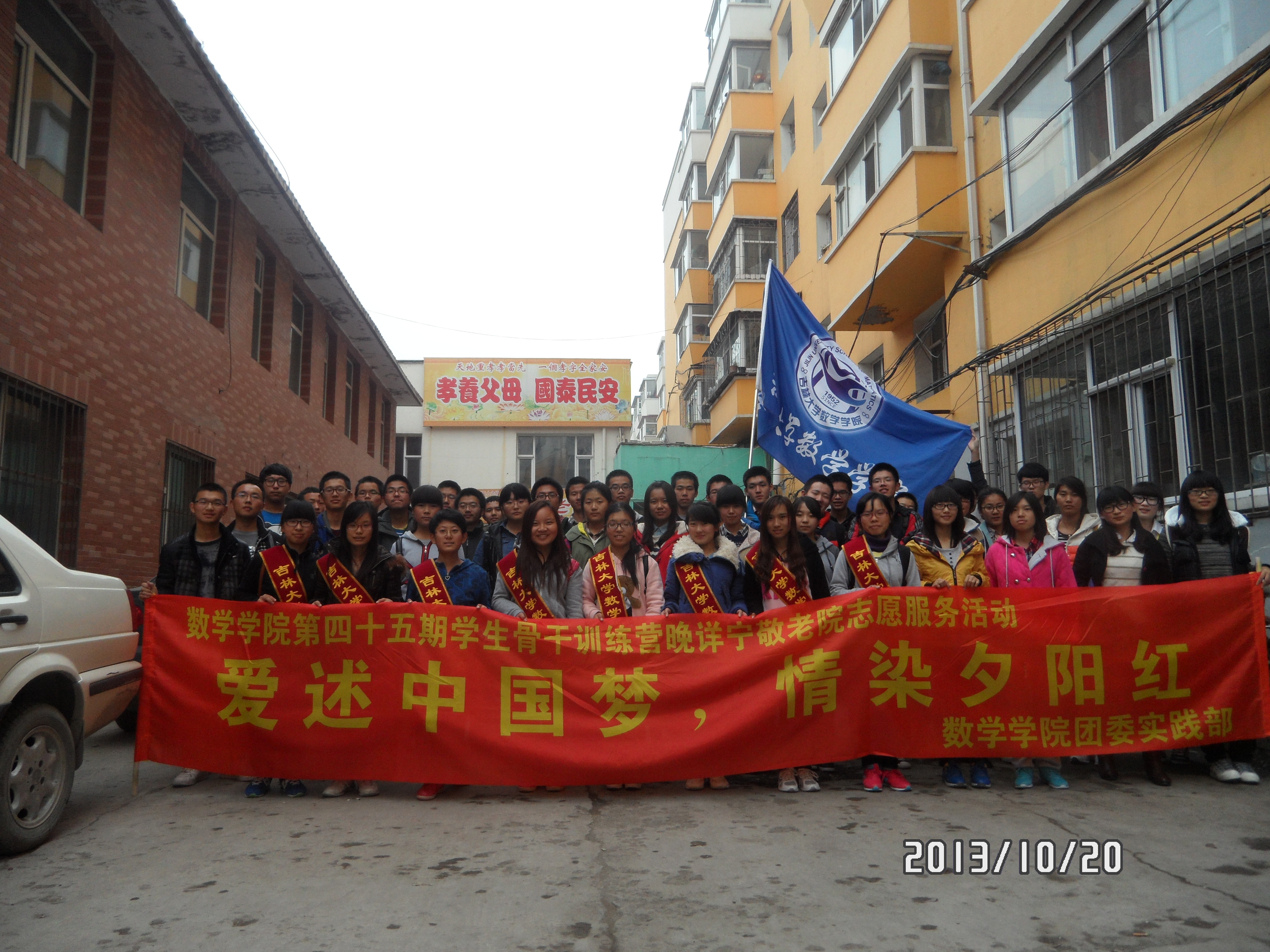 团委实践部带领2013级志愿者来到晚详宁养老院进行志愿服务。在敬老院,志愿者们陪伴老人聊天、唱歌,送去了最衷心的祝福,也收获了暖暖的感动,更体会到了肩上的责任。