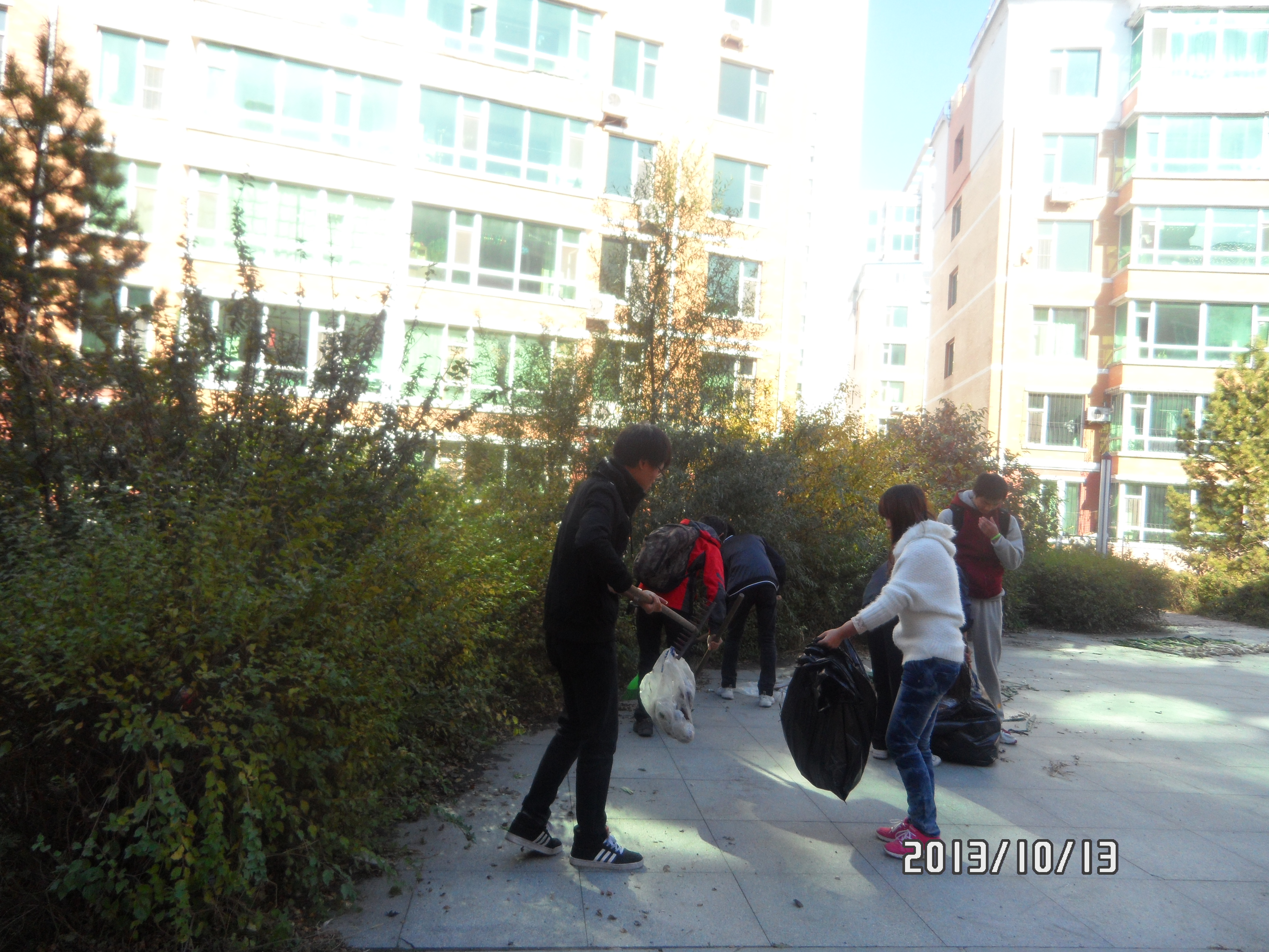 活动开始时,同学们先后领取完清洁工具,先简单划分了一下区域,随后同学们就开始行动。大家仔细认真清理了过道、草坪、花圃、凉亭,不怕脏,不怕累。由于分工明确,再加上大家相互协作配合,小区很快就在大家的共同努力下换了新的模样。在此过程中,也不时有经过的居民停下来,感谢大家使他们的居住环境更加美丽舒适。