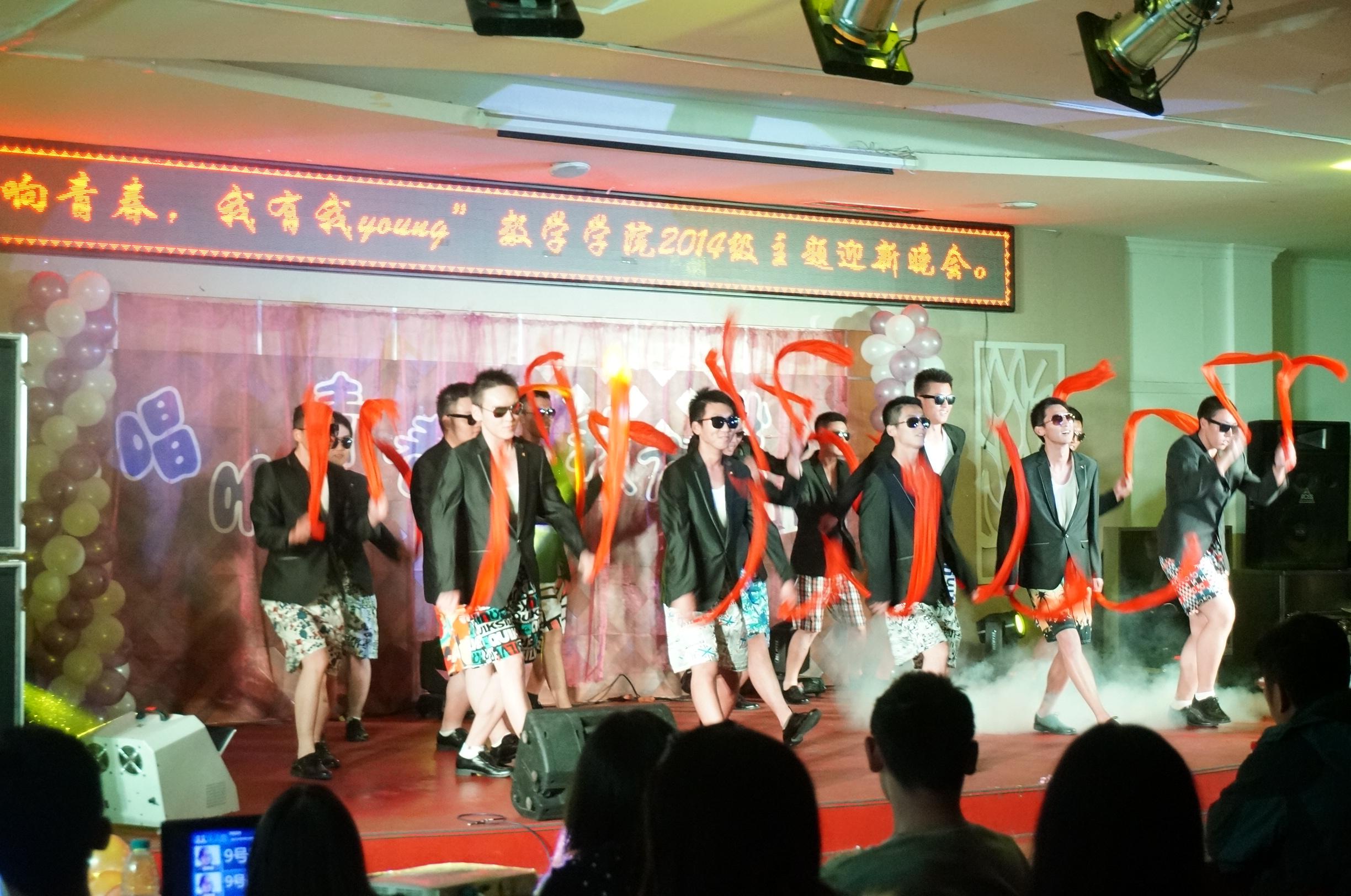 激情四射的舞蹈把晚会又一次推向高潮,广场舞配上音乐《小苹果》更是“high”翻全场,博得掌声尖叫声不断。钢琴、古筝和芭蕾演绎出的《青花瓷》别有一番风味。学生会主席马思铭深情演唱的《给你》打动了在场所有人。乐队的表演《逐梦岁月》再次让全场活跃起来。晚会在由校学生会文艺部成员演唱的《最美的太阳》的温馨的歌声中圆满结束。