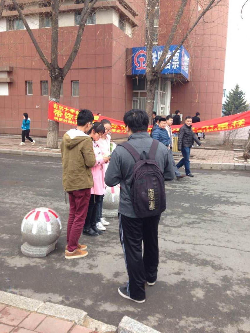 爱心阶承青年志愿者协会派选的两组志愿者同长春晨光公益组织的志愿者们共同在南湖公园、红旗街两个地点完成了校外公益宣传。志愿者们到达地点后,找到适宜的宣传地点并支起宣传海报,很快吸引了大量群众。之后志愿者们进行公益宣讲,并向热心的群众发放传单。上午11点半,两组志愿者分别结束宣传,清理场地。