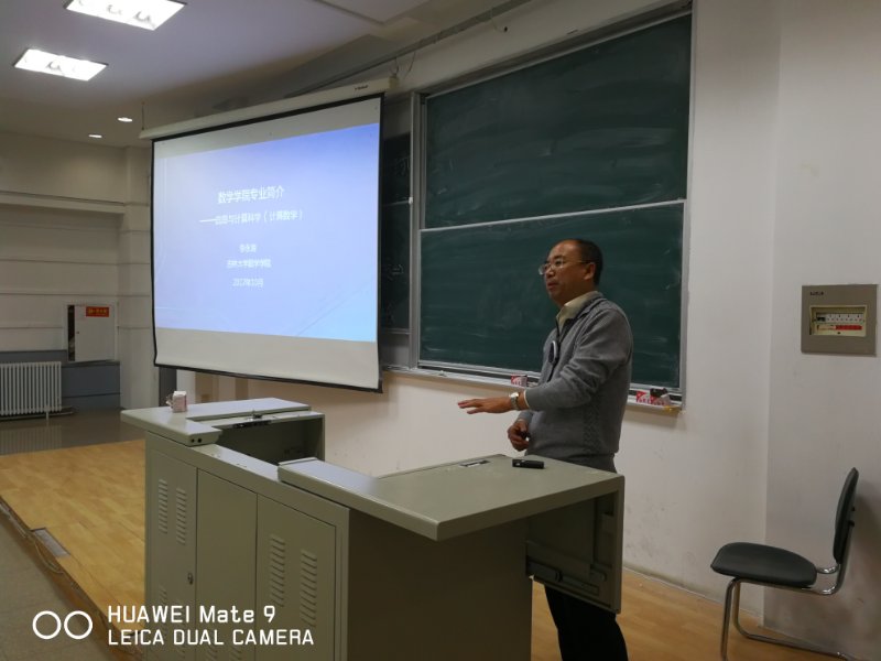 此次介绍大会由王德辉教授主持。首先,由计算数学系主任李永海教授介绍信息与计算科学专业,此专业最初为国家二级学科,两次被评为国家二级一流学科,随着大数学的发展,被评为国家一级学科。而今它的主干课程有数学分析、高等代数、空间解析几何、实变函数等,李永海教授也为我们介绍了相应学科的带头人,阵容十分强悍。随后,概率统计与数据科学系朱复康教授介绍了统计学相关知识,他称统计学不止是学科学,也学艺术。在定义之后,介绍了统计学门下的各个特色学科及其带头人,具体有应用概率论、大数据分析、数理统计、生物与医学统计等。最后还介绍了统计学与金融统计的内在联系。紧接着,应用数学系主任王春朋教授介绍的了数学与应用数学专业,此专业是禁漫天堂下载