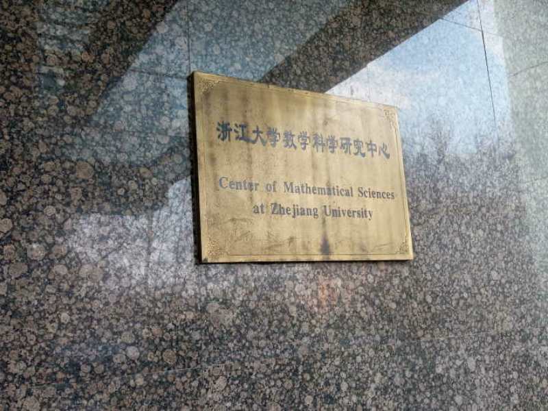 首先,我们参观了永谦数学大楼即浙江大学数学科学研究中心,它由浙大校友汤永谦先生和夫人姚文琴女士捐资建造。由国际知名数学家,世界数学最高奖“菲尔兹奖”获得者丘成桐先生担任研究中心主任。步入大楼,各色各样的海报宣传栏吸引了我的注意力,内容大致是世界大学生数学竞赛中浙大学子的获奖情况,数学研讨会的召开事宜及基础数学知识的普及。走上二楼,一窥办公室门口的名片,便是丘成桐教授的办公室,但丘老先生定是不在办公室里的了。然后,我们小组参观了浙江大学高等数学研究所,在其中遇见了多位白发苍苍,颇有儒雅之气的老前辈,但我一行人眼拙,怕不是错过了好些数学研究的大方之家。之后,我们前往了浙江大学数学科学学院所在大楼,楼梯间均是国内最优秀数学家的宣传海报,在楼内遇见许多来来往往的年轻人们,将文件在办公室之间来回交递,他们大抵便是这新一代的数学研究者了。
