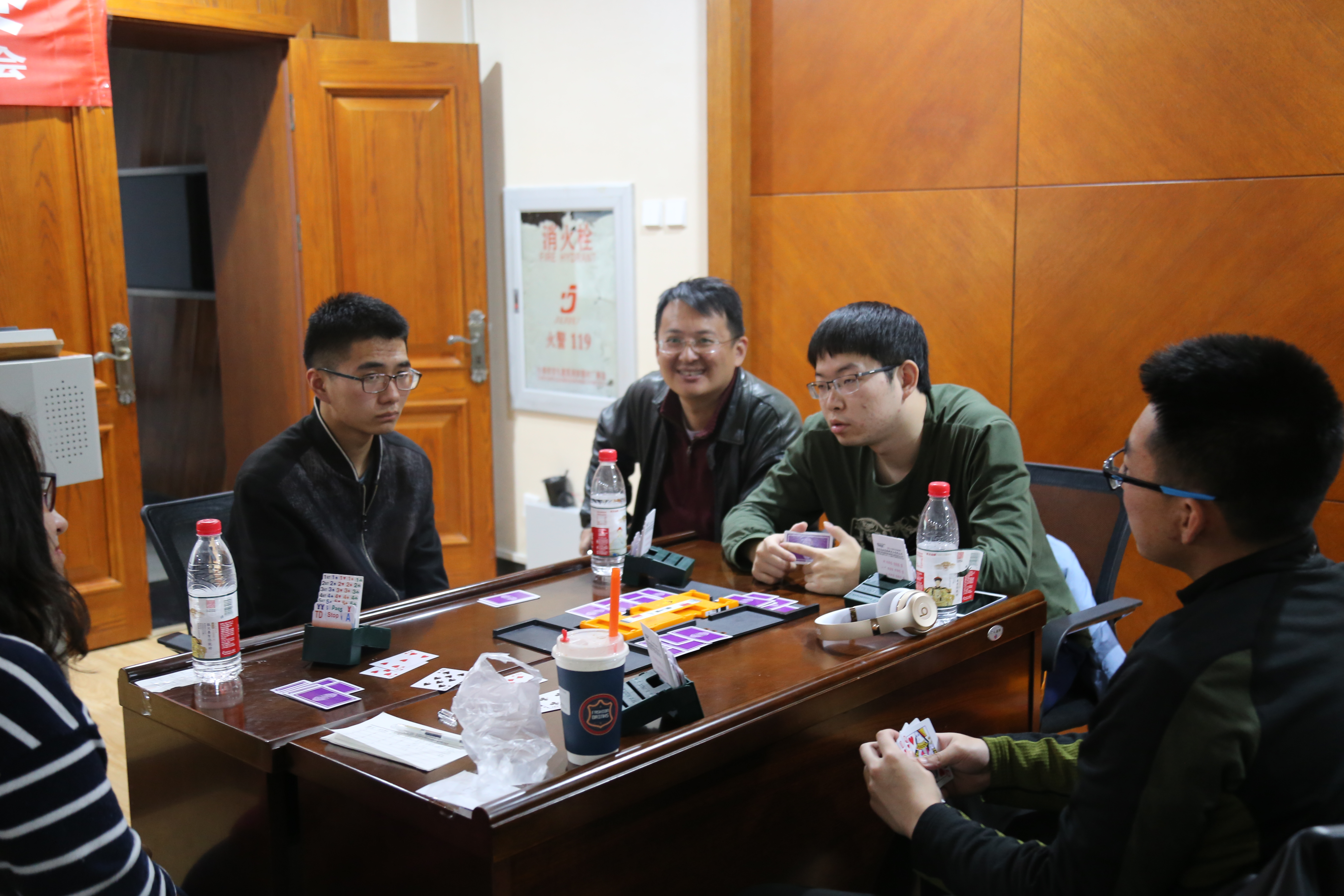 比赛中途穿插了3-4次休息环节以及提问桥牌知识讲座所介绍的桥牌知识,以增强大家对桥牌知识的了解。同学们积极抢答,大展风采,同时丰富了自己对桥牌的知识了解。