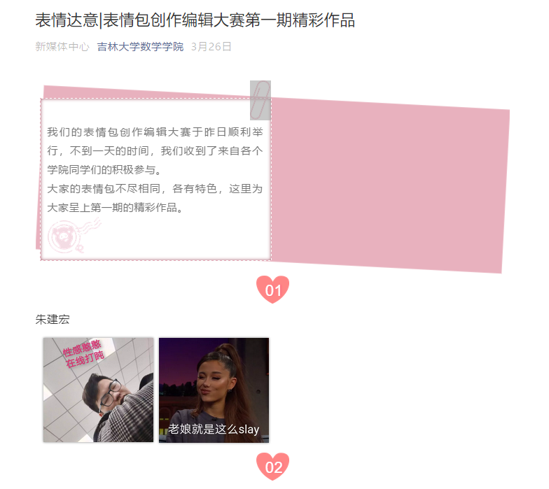 为了增强学生们对表情的合理运用,丰富学生的文化生活,也为同学们提供一个提现自己幽默风趣的平台,让同学们的大学生活摆脱枯燥,更加多姿多彩,我院新媒体中心于3月25日至4月9日成功举行了表情包创作编辑大赛。