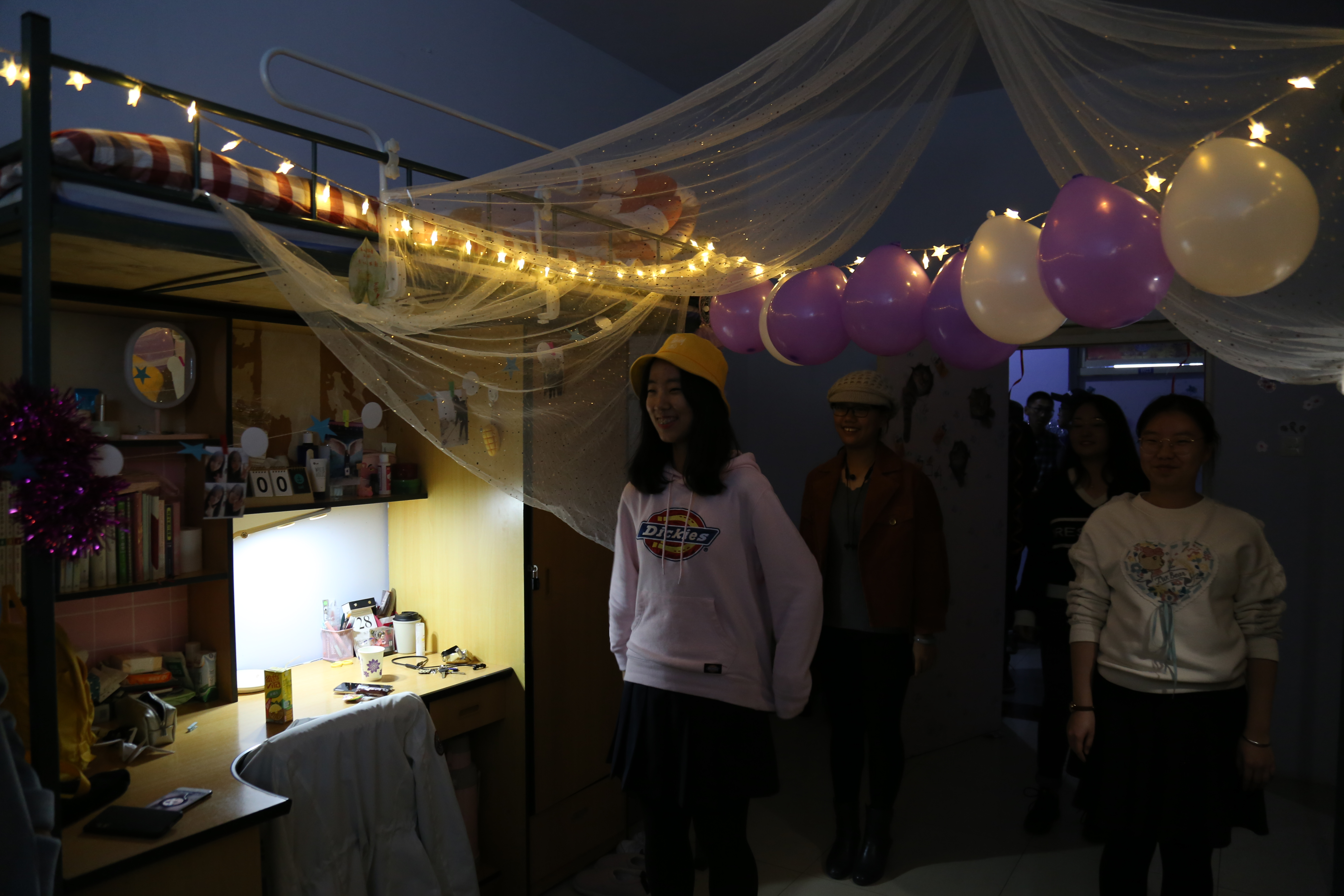 一至四楼走廊部分由学生会女生部负责,受到了各院女生的一致夸赞。18级女生寝室各具特色,装饰的十分用心,走廊内的照片墙记录了同学们开学以来的点点滴滴,每间寝室都制定了自己的小目标,并有了自己寝室独特的名字,想象力十分丰富。有的宿舍在走廊的墙面上放了一点糖果,给大家品尝;有的宿舍装饰成了城堡,十分梦幻。活动现场气氛非常热闹,男女生联谊表演节目,弹电子琴、唱歌、跳舞等,十分精彩,大家都兴致盎然。