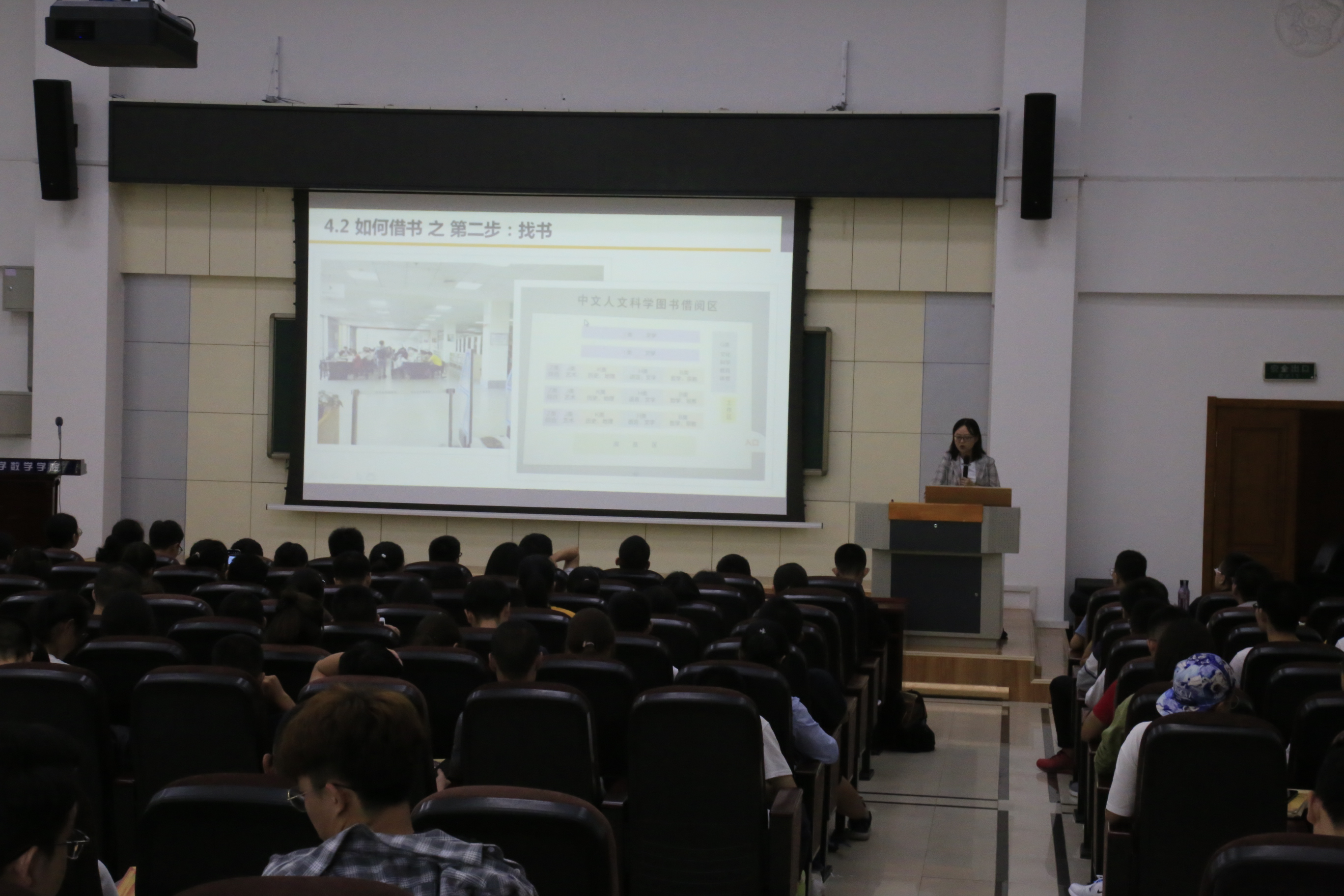 于2019年8月27日上午九点五十在数学楼二楼报告厅开始了新生入学图书馆教育课程。