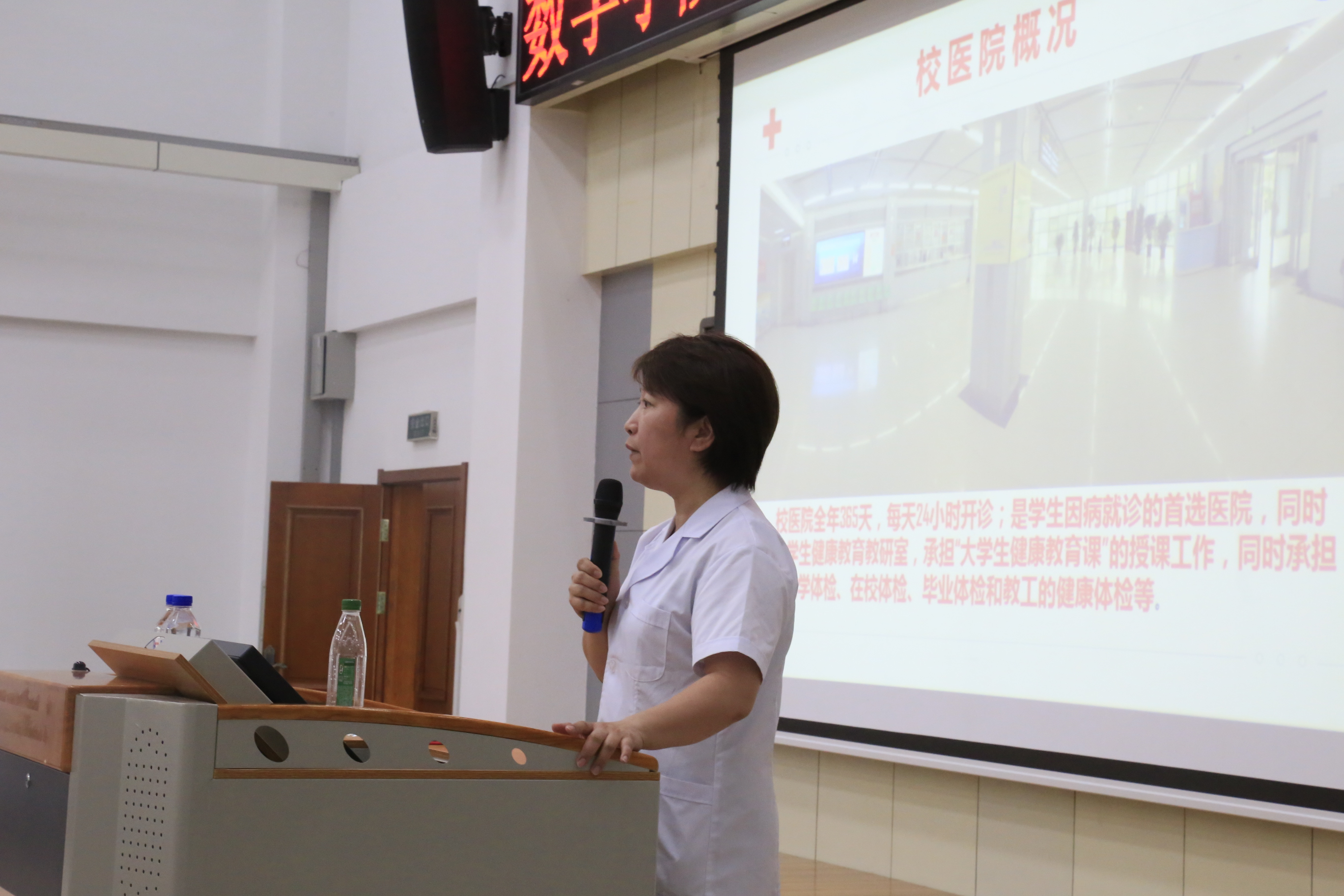 为了更好地方便新生们的生活,2019年8月28日,我院邀请到校医院的任艳蕾老师于数学楼二楼报告厅为2019级新生进行卫生保健教育。