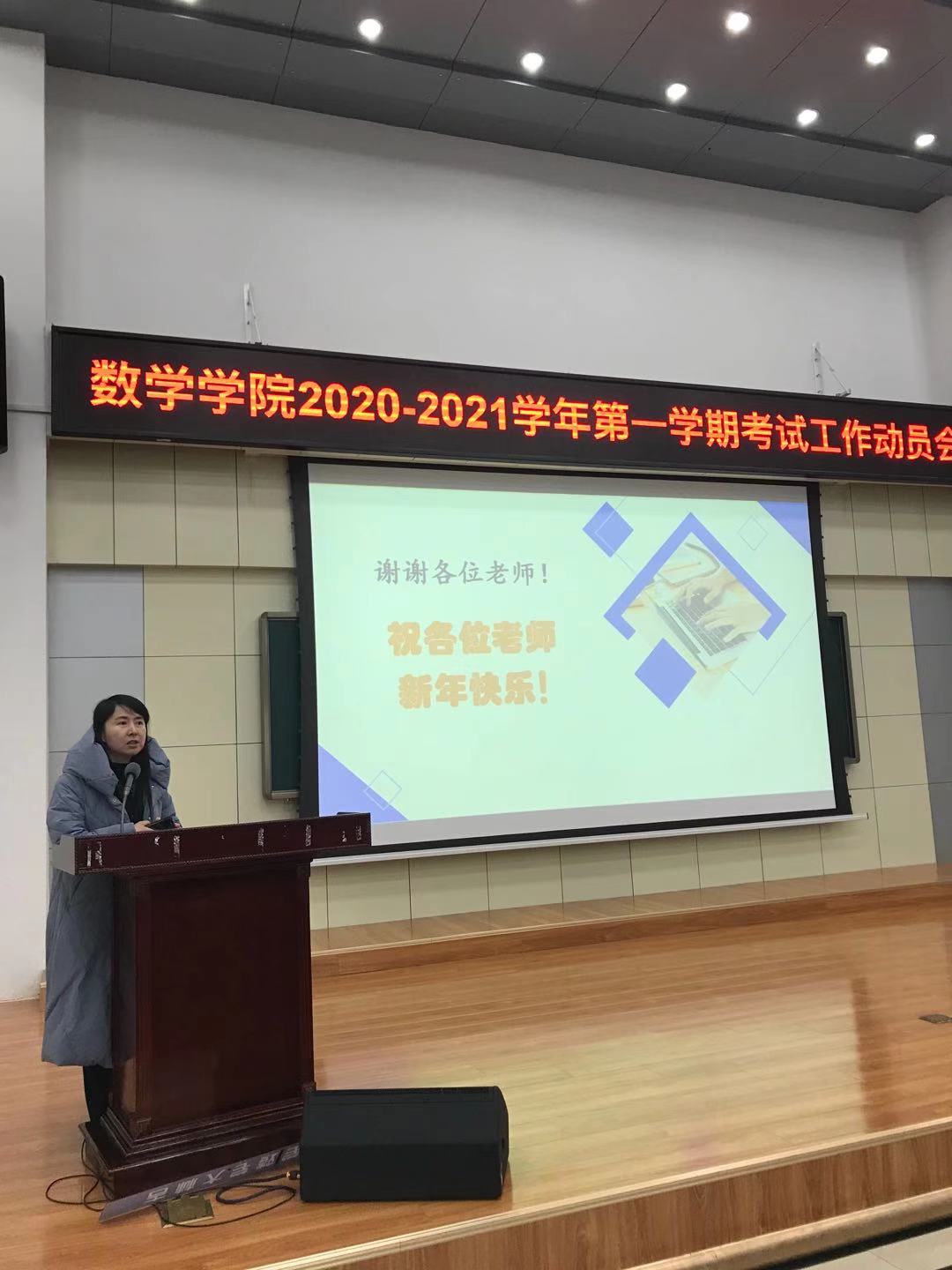 在数学楼二楼报告厅召开2020-2021学年第一学期考试工作动员会,就本学期期末考试工作做出布置和要求。学院全体教师、教学秘书参加了会议。会议由院长助理王春朋主持。