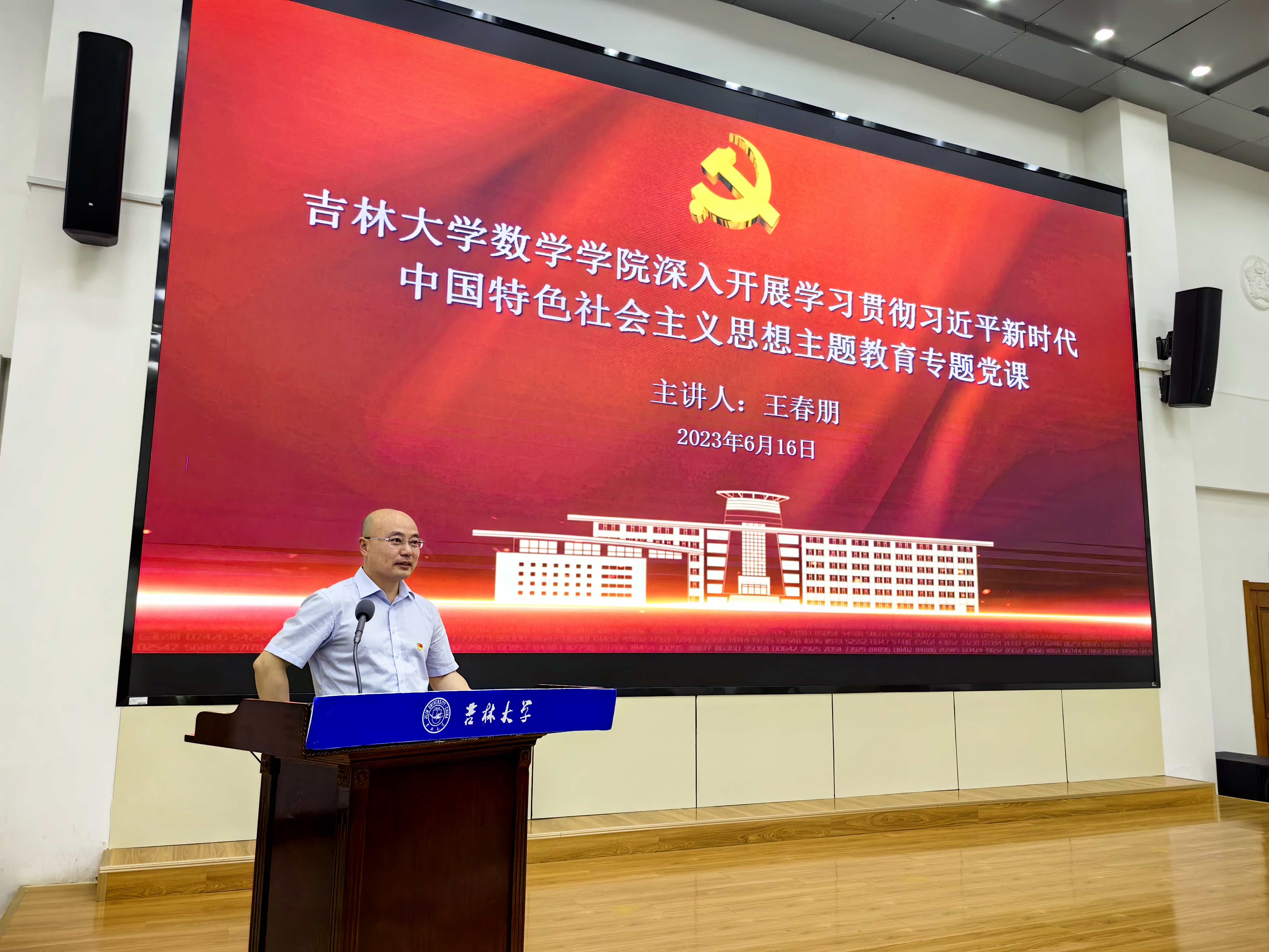 党委书记王春朋为学院全体教师讲授主题教育专题党课。