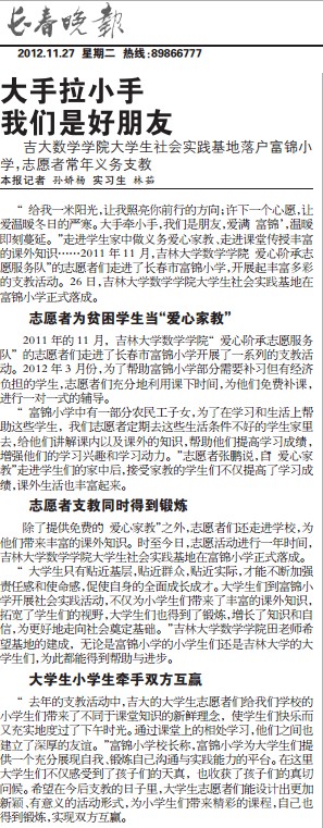 《长春晚报》今年第4次报道禁漫天堂下载 社会实践与志愿服务活动