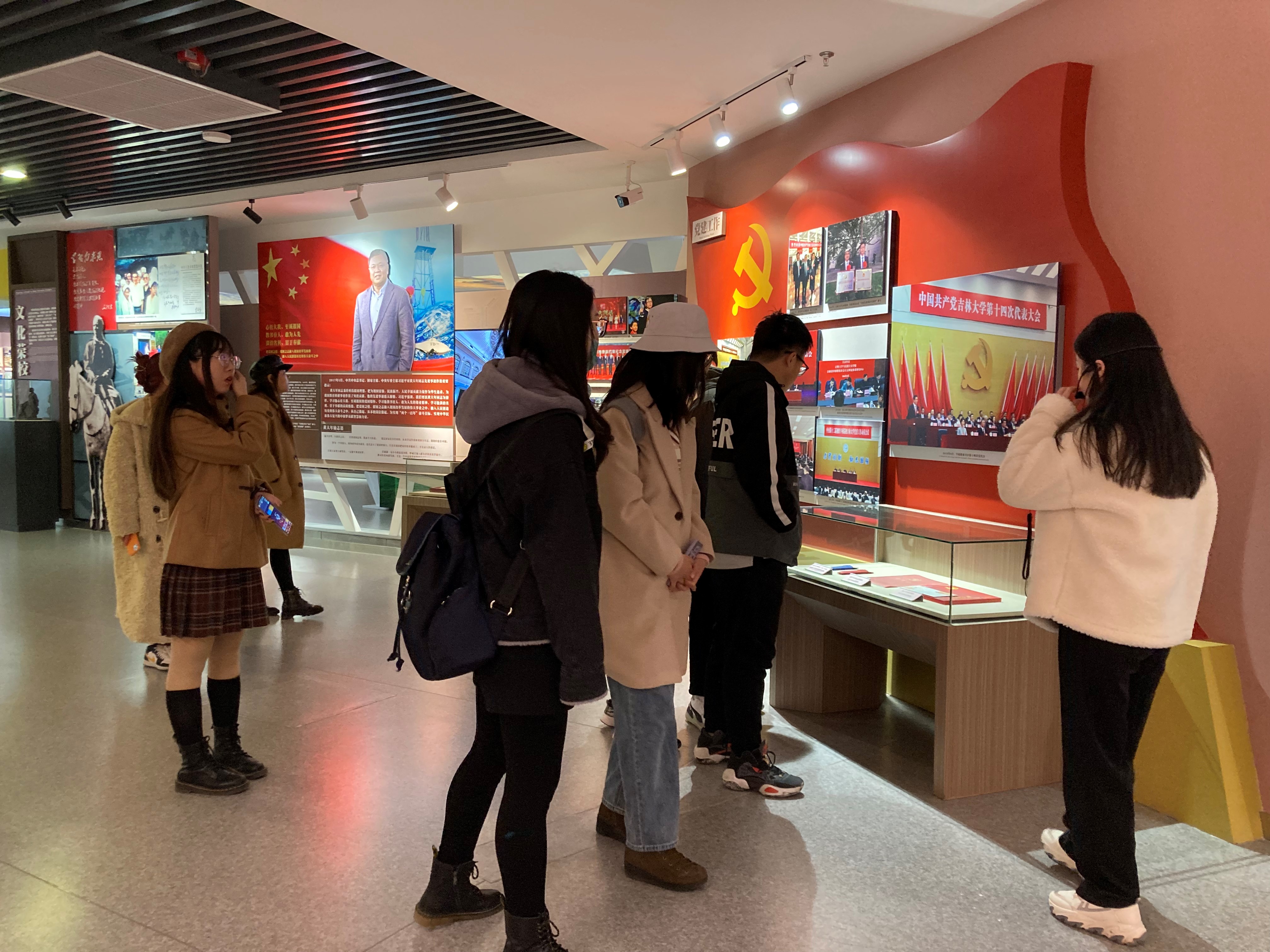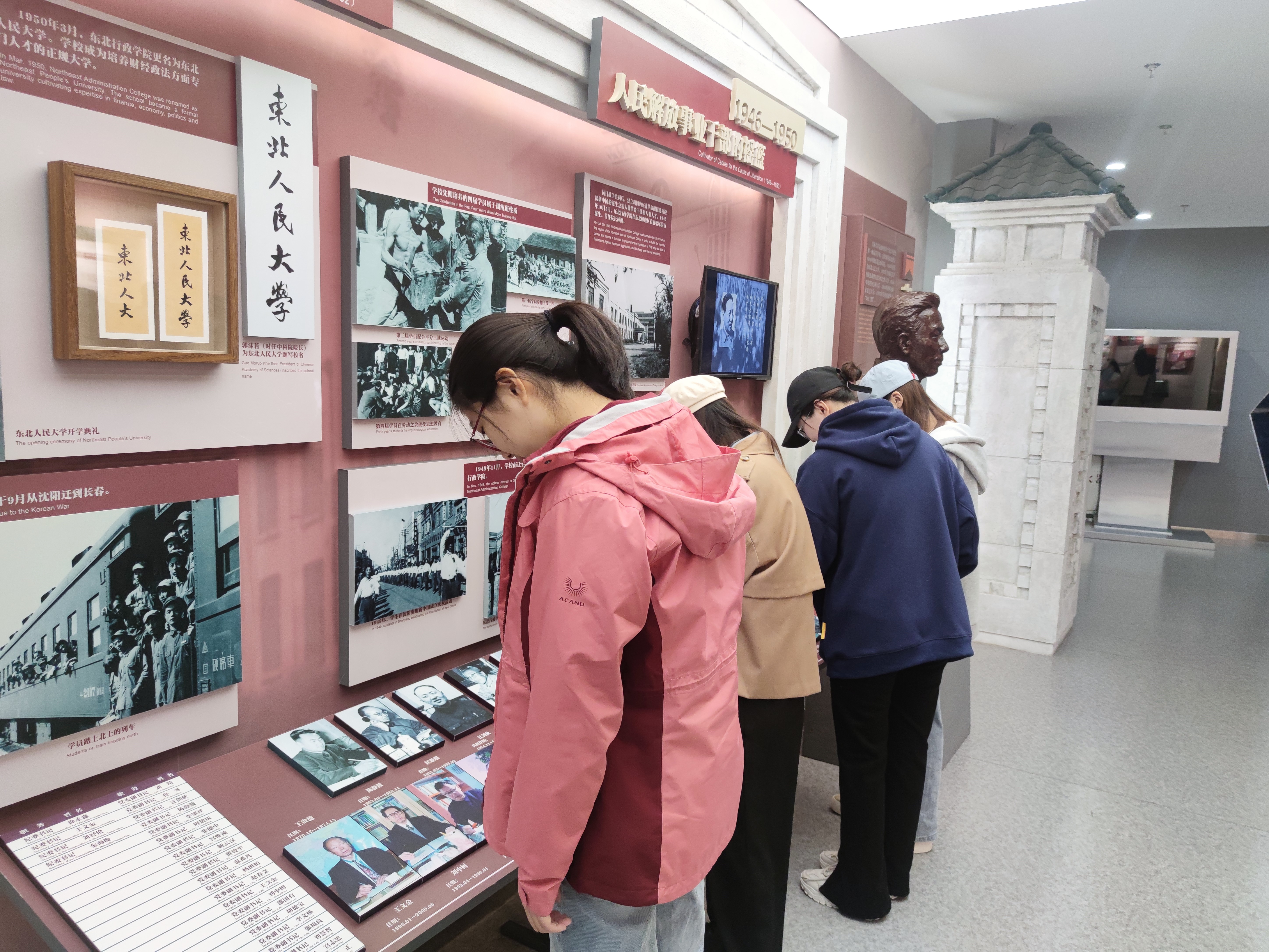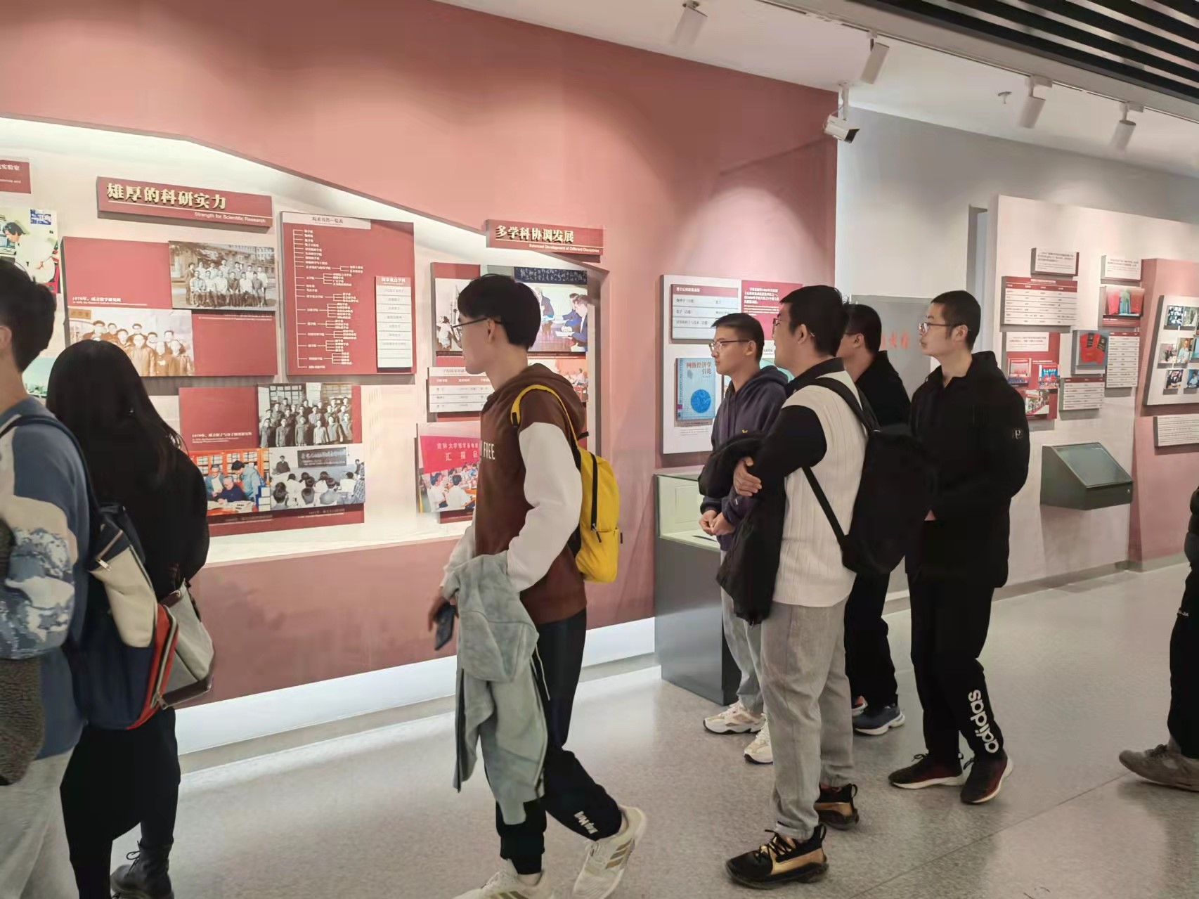 的校史。大家时而驻足观看展品,时而低头记录所思所得。