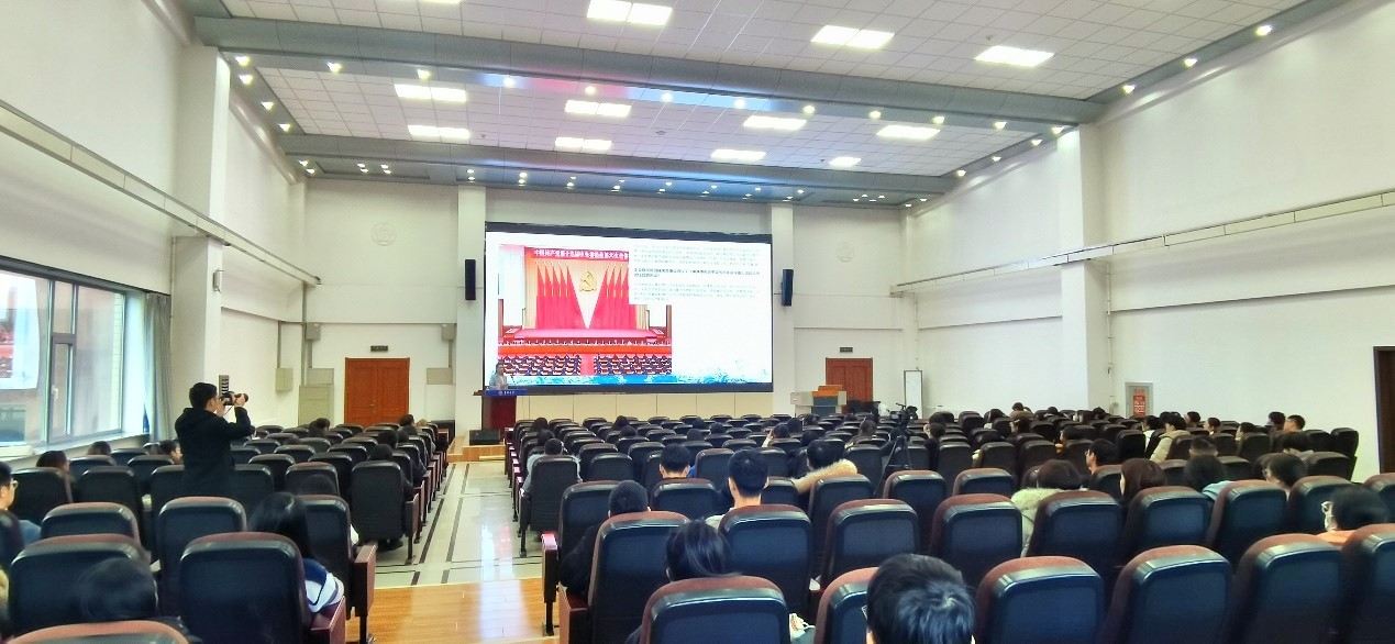 博士生讲师团讲师李天娇博士于数学楼二楼报告厅进行了十九届六中全会精神学习教育宣讲。本次宣讲的主题为“总结百年奋斗史•接续赶考新时代”——新中国以来国家领导人新闻发布的机制演变与基本经验”,学院研究生党支部党员、预备党员、积极分子参与了此次宣讲活动。