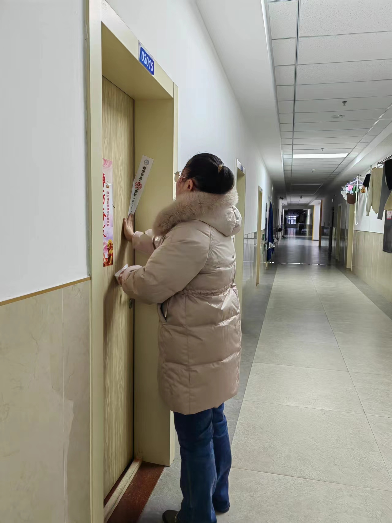 1月21日下午,学院党委副书记陈续升、研究生辅导员张轶群走访了校内12栋公寓楼。走访过程中,重点了解留校研究生学习、生活情况,排查留校研究生寝室消防安全隐患,叮嘱研究生及时完成合寝居住,提醒大家离校前务必关好门窗、切断电源,并对已离校研究生寝室进行了封寝。